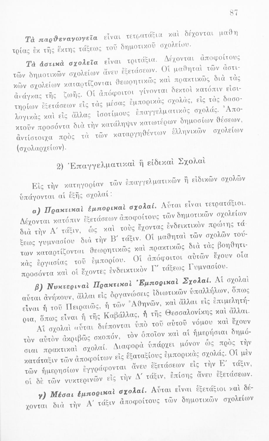 Τάξη:  Α' Ελληνικού Σχολείου / Β' Ελληνικού Σχολείου / Γ' Ελληνικού Σχολείου / Παρθεναγωγείο / Εμπορικές και Πρακτικές Σχολές