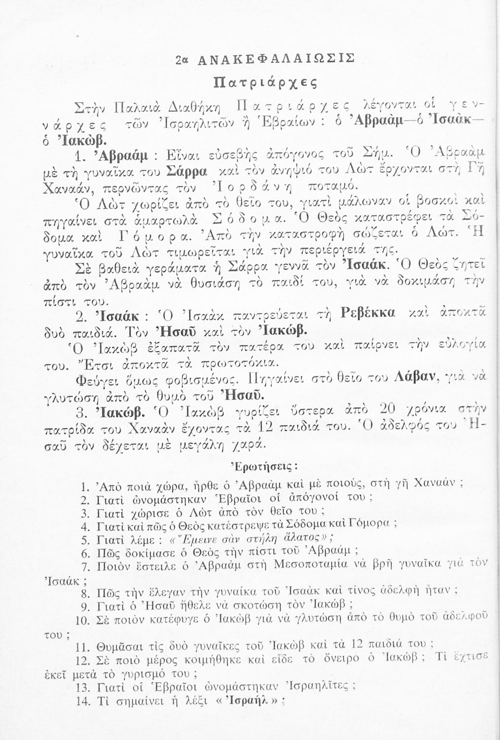 Σχολικό εγχειρίδιο Θρησκευτικών για την Γ΄ Γυμνασίου. Το βιβλίο ξεκινά με τη δημιουργία του κόσμου, συνεχίζει με τους Πατριάρχες, Προφήτες και Βασιλείς των Εβραίων.