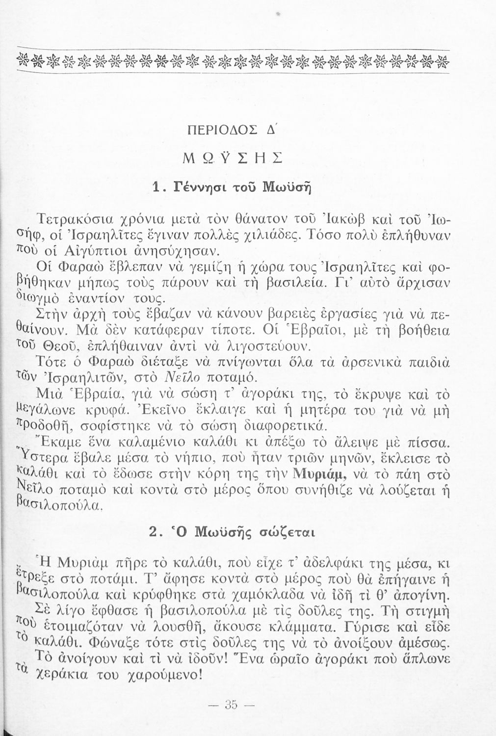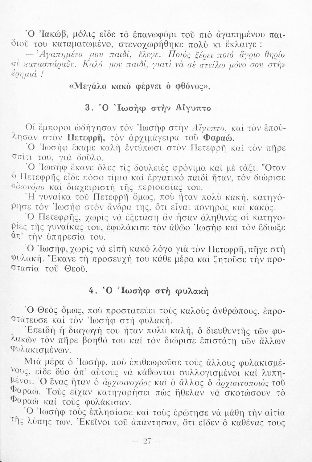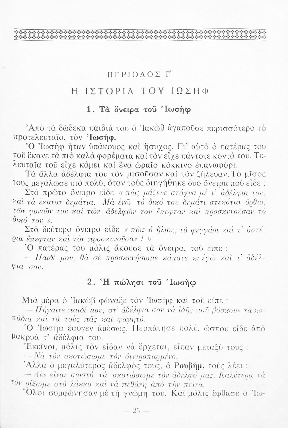Σχολικό εγχειρίδιο Θρησκευτικών για την Γ΄ τάξη Δημοτικού. Περιέχει ιστορίες από την Παλαιά Διαθήκη. Ξεκινά με την δημιουργία του κόσμου και αναφέρει την ιστορία του εβραϊκού λαού.