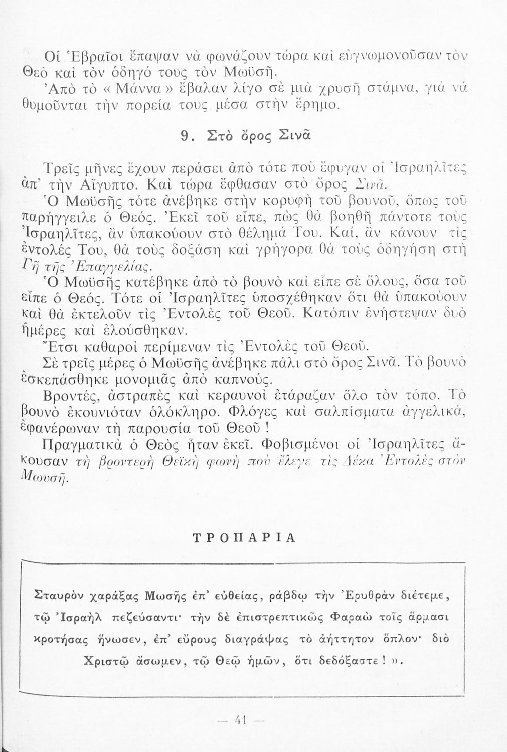 Σχολικό εγχειρίδιο Θρησκευτικών για την Γ΄ τάξη Δημοτικού. Περιέχει ιστορίες από την Παλαιά Διαθήκη. Ξεκινά με την δημιουργία του κόσμου και αναφέρει την ιστορία του εβραϊκού λαού.