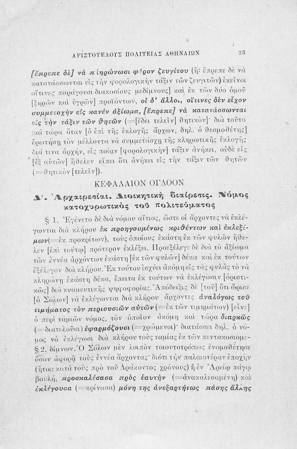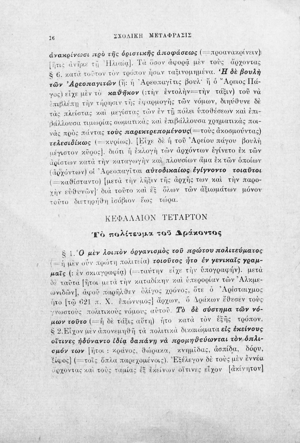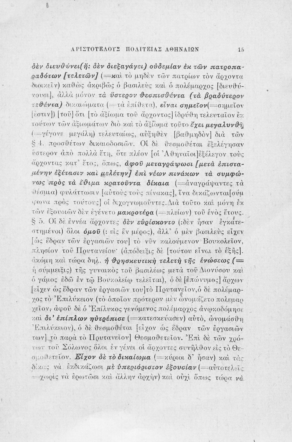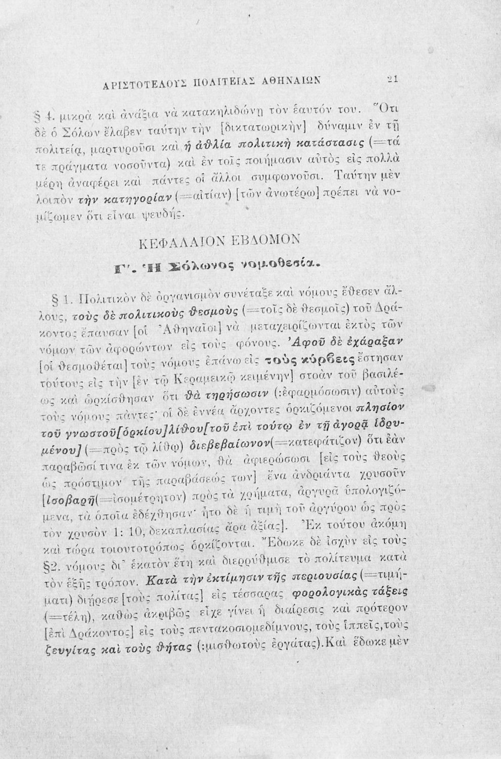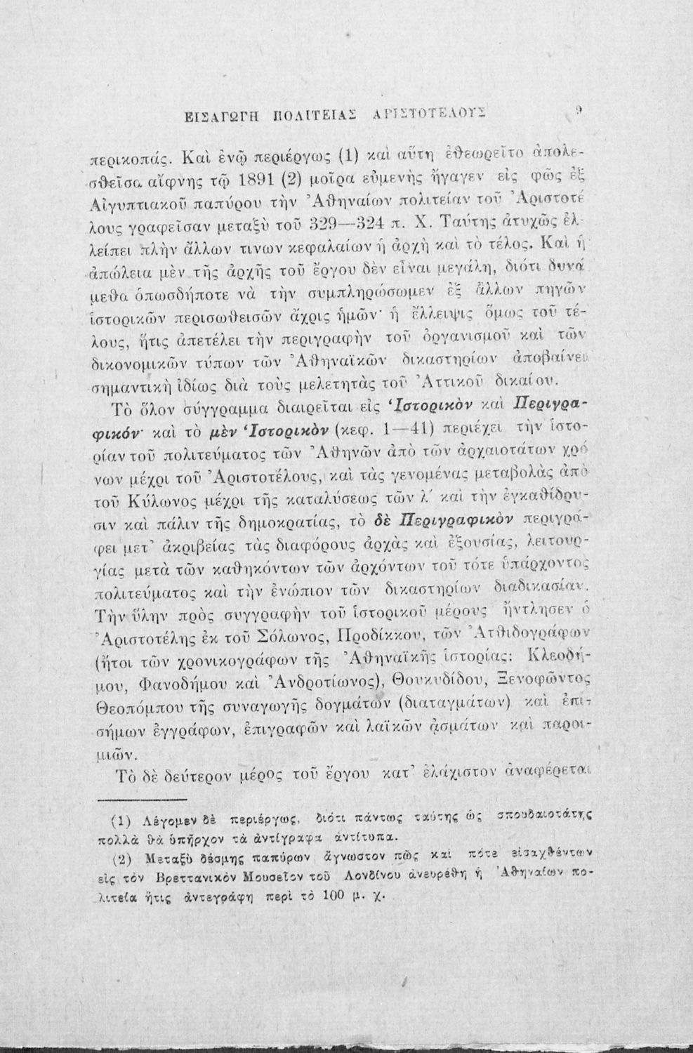 Μαθητικό βοήθημα Αρχαίων Ελληνικών Γ΄ Γυμνασίου που περιλαμβάνει εισαγωγή στη ζωή και το έργο του Αριστοτέλη και μετάφραση της Αθηναίων Πολιτείας.