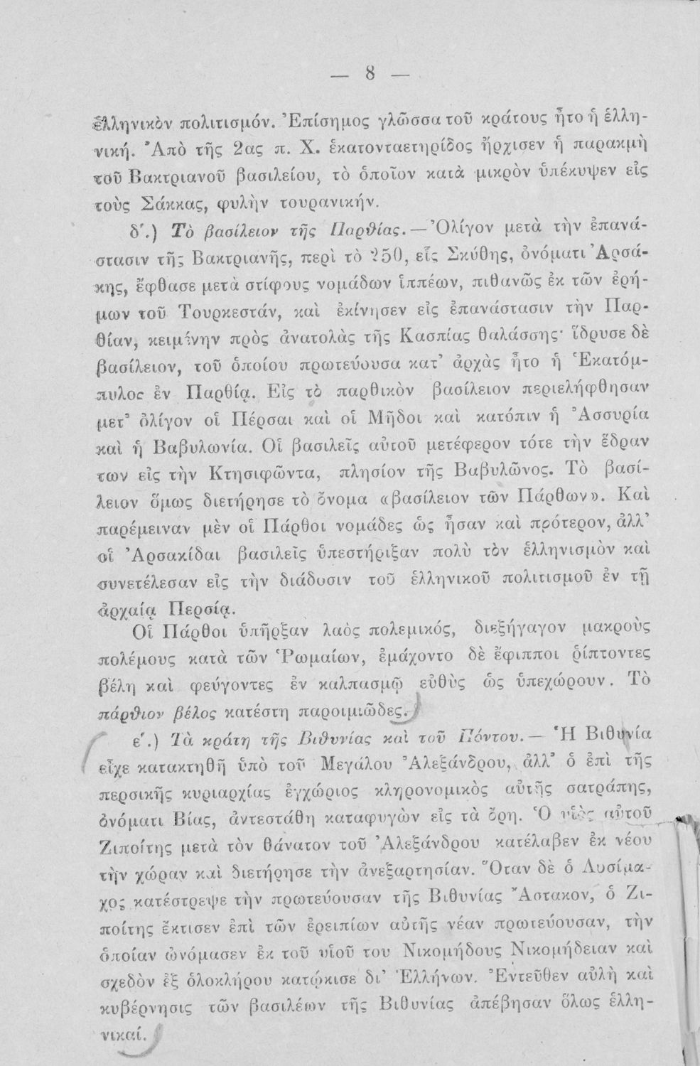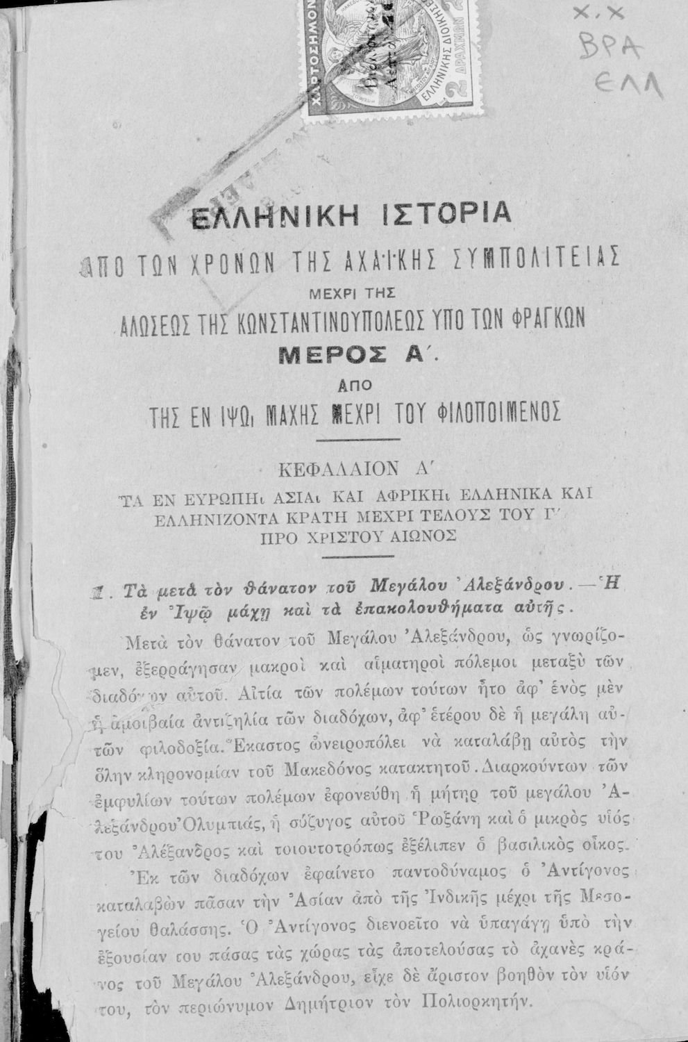 Βαθμίδα εκπαίδευσης: Δευτεροβάθμια Τάξη: Β' Ελληνικού Σχολείου Μάθημα: Ιστορία Γλώσσα: Καθαρεύουσα Παρουσίαση περιεχομένου: Σχολικό εγχειρίδιο Ιστορίας Β' Ελληνικού Σχολείου που περιλαμβάνει τα ιστορικά και πολεμικά γεγονότα από τον θάνατο του Μεγάλου Αλεξάνδρου μέχρι την άλωση της Κωνσταντινούπολης από τους Φράγκους. |