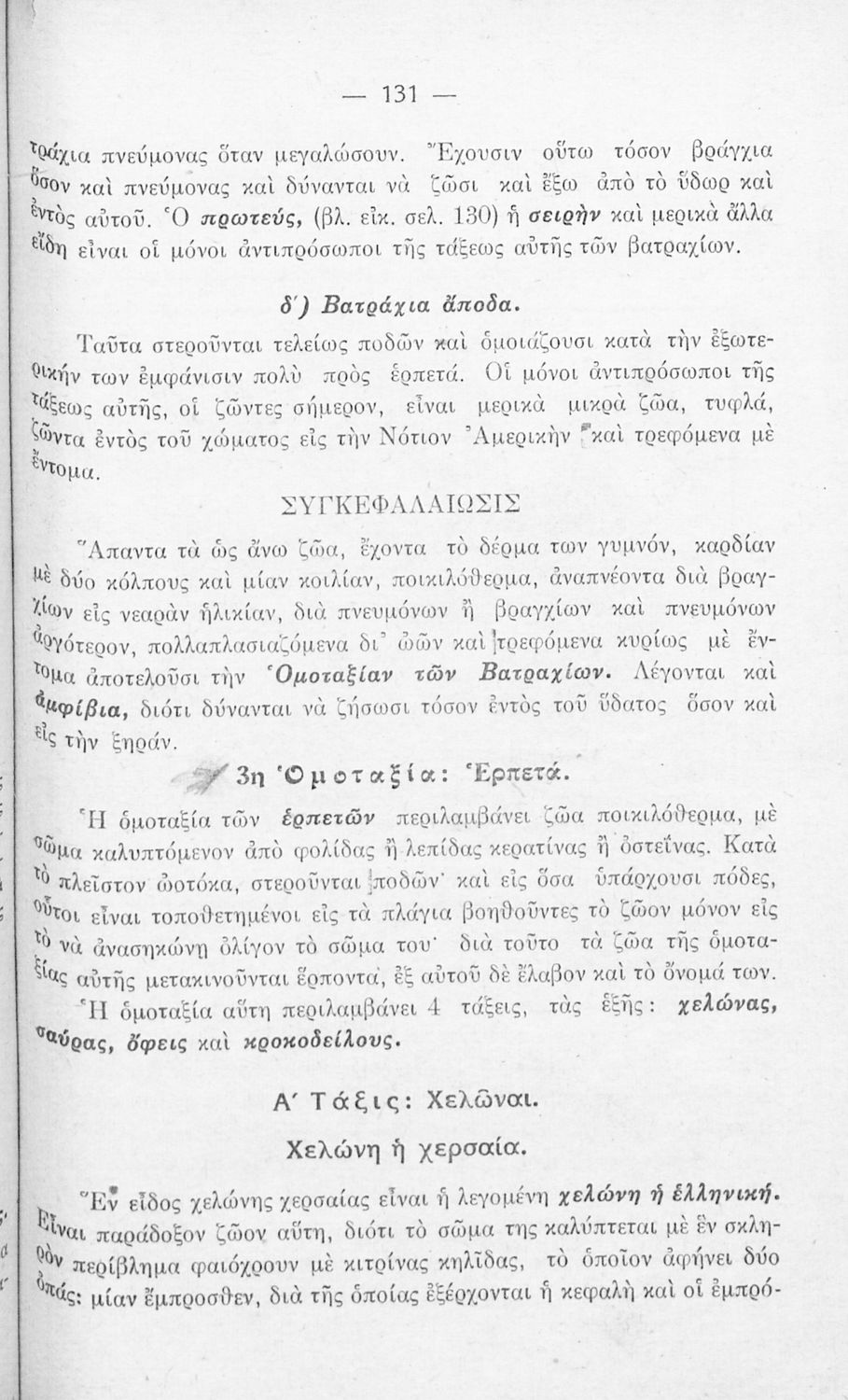 Σχολικό εγχειρίδιο Ζωολογίας για την Γ΄ τάξη των Εξαταξίων Γυμνασίων που παρουσιάζει τα διάφορα ζώα ανάλογα με την συνομοταξία στην οποία ανήκουν.