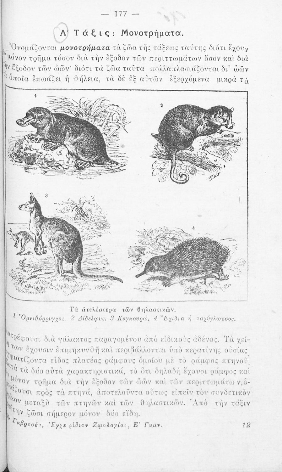 Τίτλος: Εγχειρίδιον ζωολογίας προς χρήσιν των μαθητών της Ε΄ τάξεως των Οκταταξίων Γυμνασίων