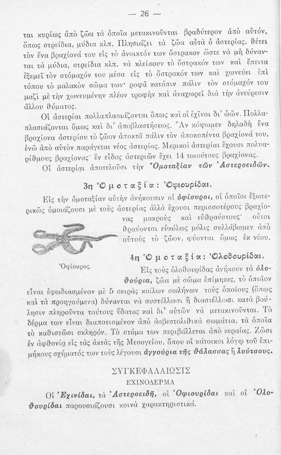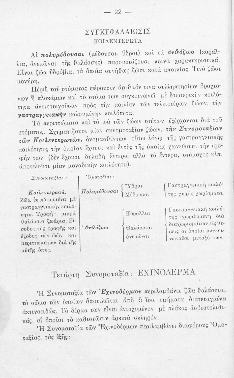 Σχολικό εγχειρίδιο Ζωολογίας για την Γ΄ τάξη των Εξαταξίων Γυμνασίων που παρουσιάζει τα διάφορα ζώα ανάλογα με την συνομοταξία στην οποία ανήκουν.
