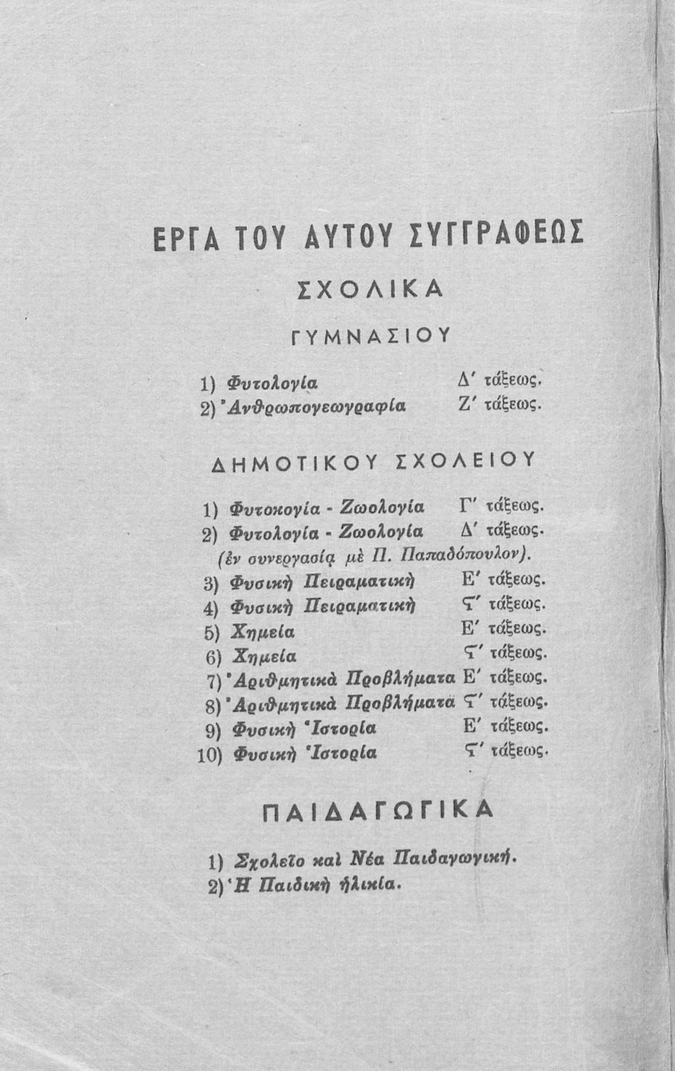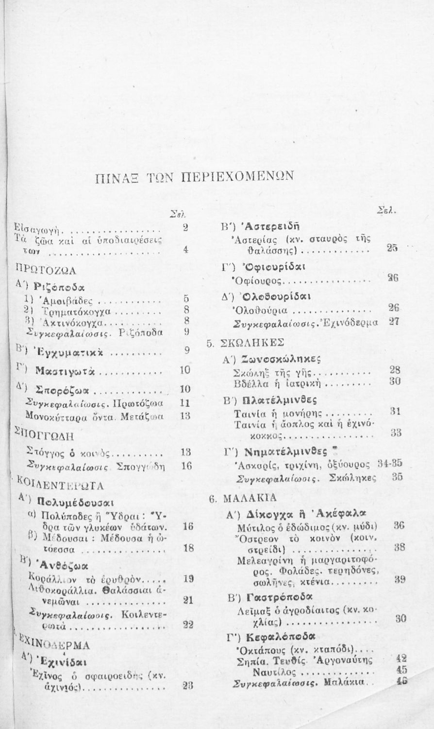 Σχολικό εγχειρίδιο Ζωολογίας για την Γ΄ Γυμνασίου χωρισμένο σε δύο ενότητες: την περιγραφική και τη γενική ζωολογία. Ο συγγραφέας ήταν πρώην καθηγητής πανεπιστημίου.