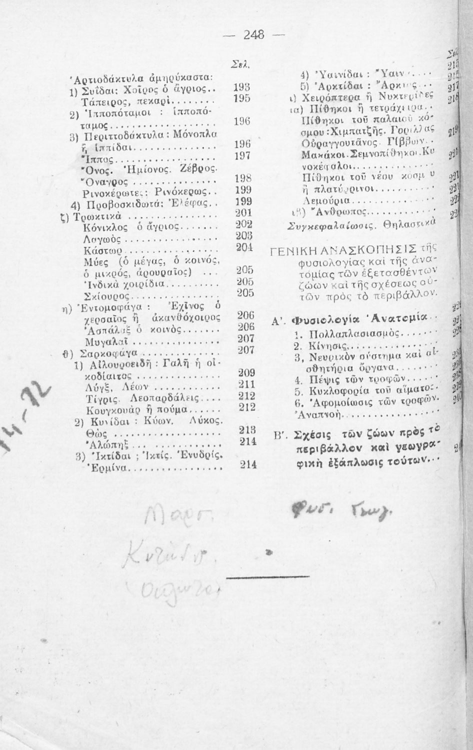Σχολικό εγχειρίδιο Ζωολογίας για την Γ΄ τάξη των Εξαταξίων Γυμνασίων που παρουσιάζει τα διάφορα ζώα ανάλογα με την συνομοταξία στην οποία ανήκουν.