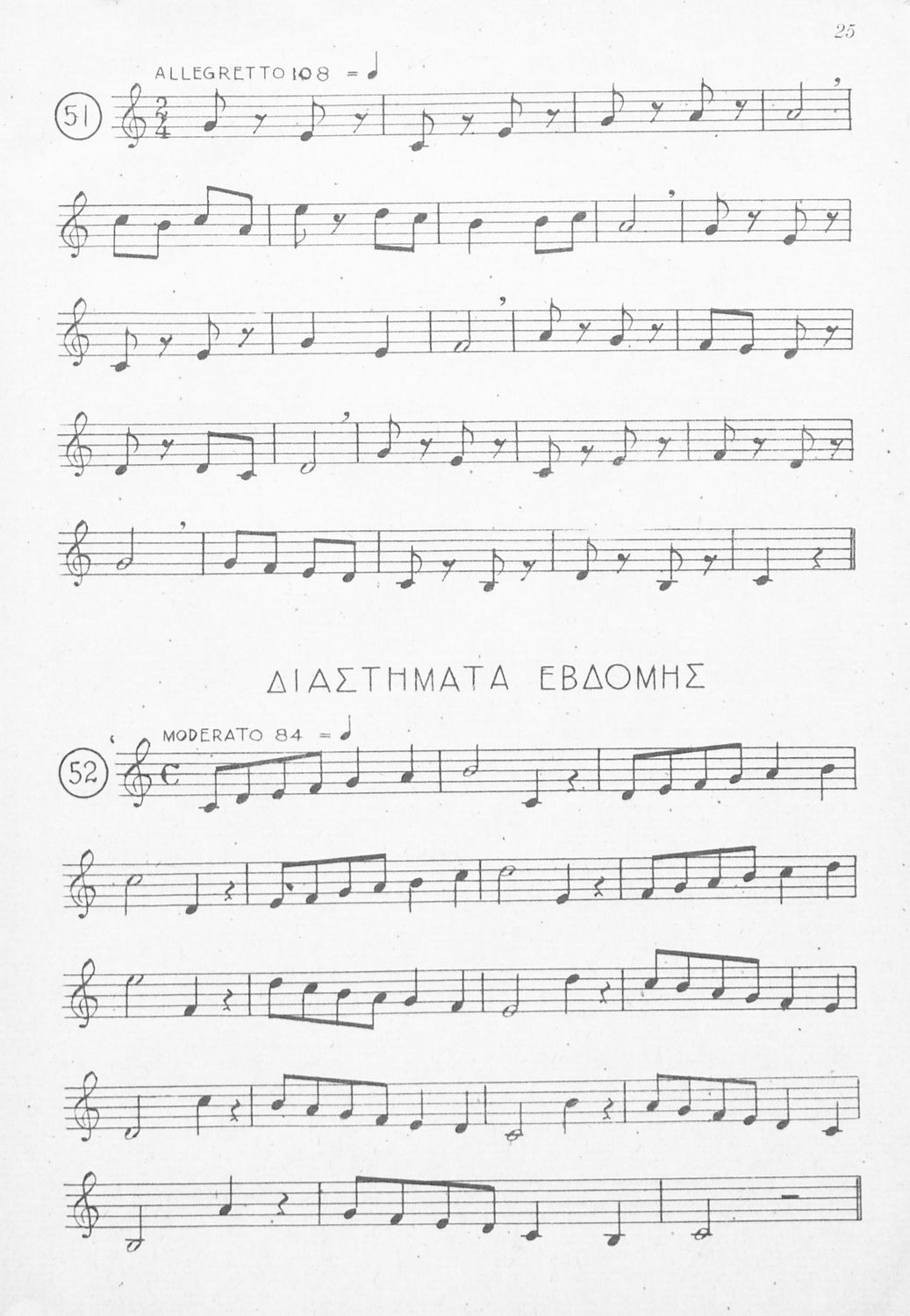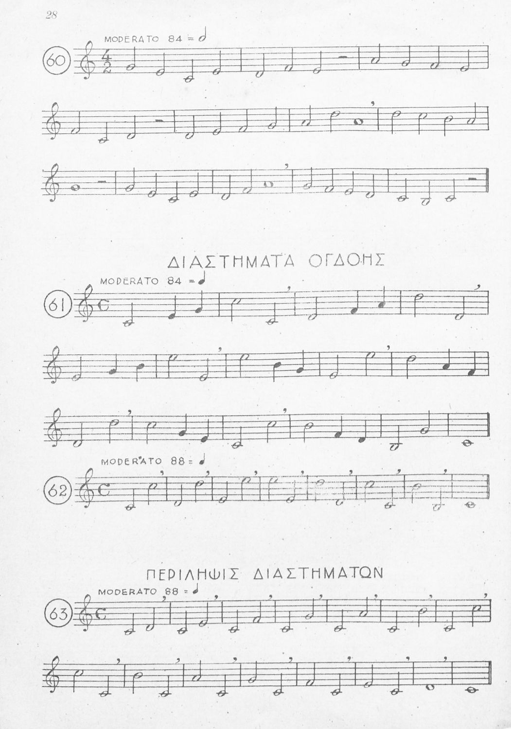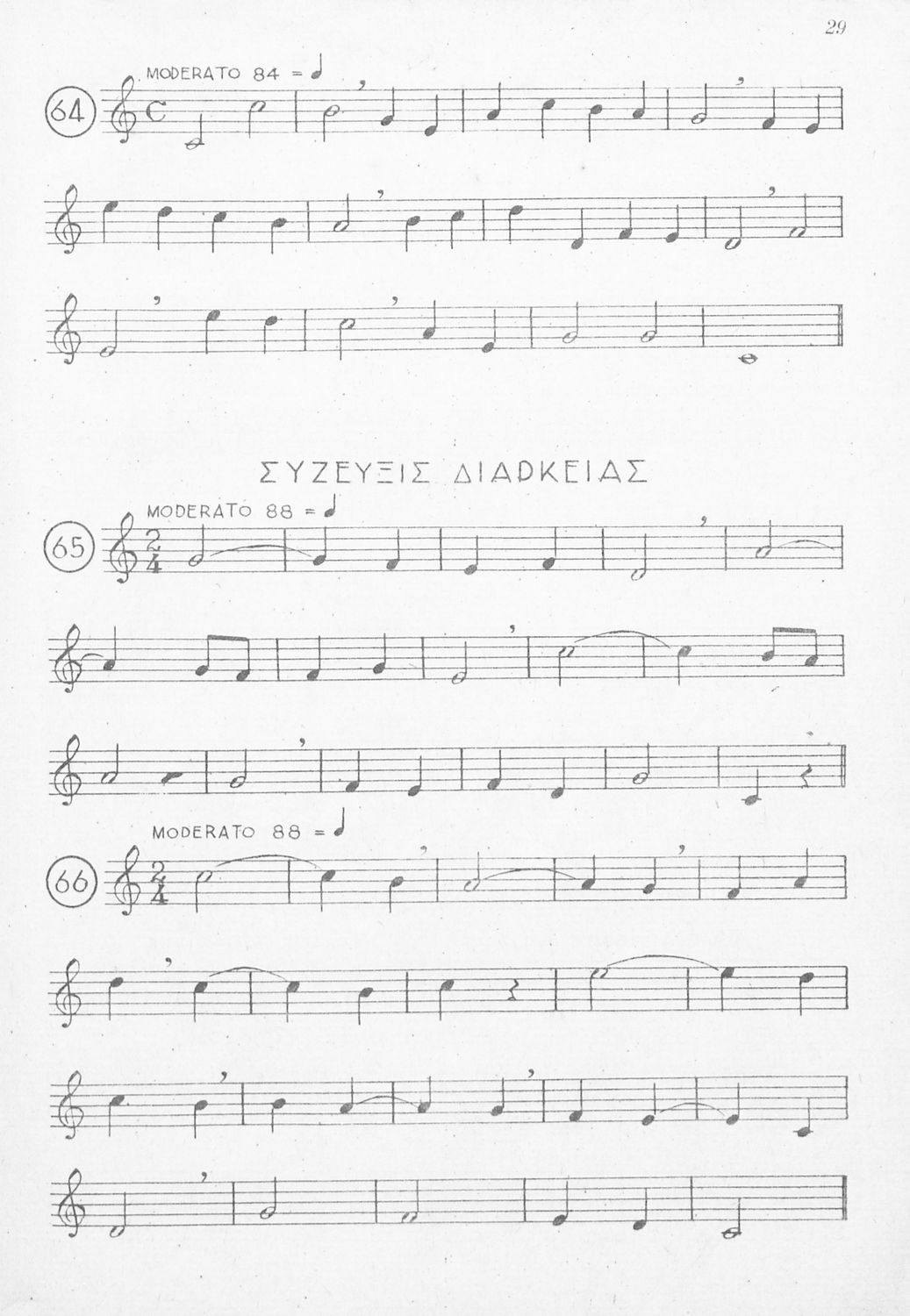 Μαθητικό βοήθημα για τις τάξεις του Γυμνασίου, των Παιδαγωγικών Ακαδημιών και Εκκλησιαστικών Σχολών για το μάθημα της Μουσικής. Το εγχειρίδιο αποτελείται από παρτιτούρες με νότες για την καλύτερη εκμάθηση του μαθήματος της μουσικής. Δίνονται παραδείγματα για το μέτρο, τις παύσεις, τα μουσικά διαστήματα κ.α.