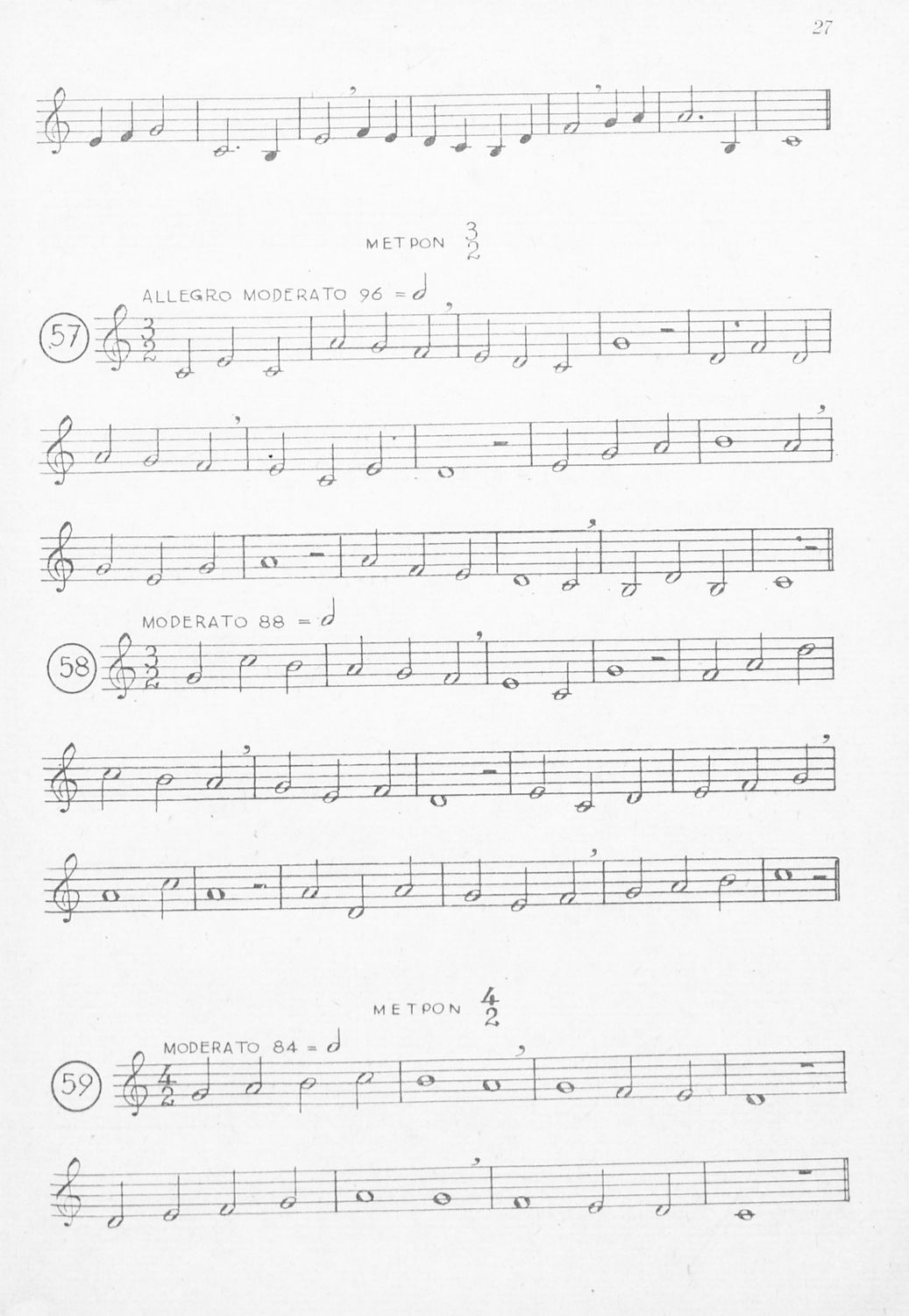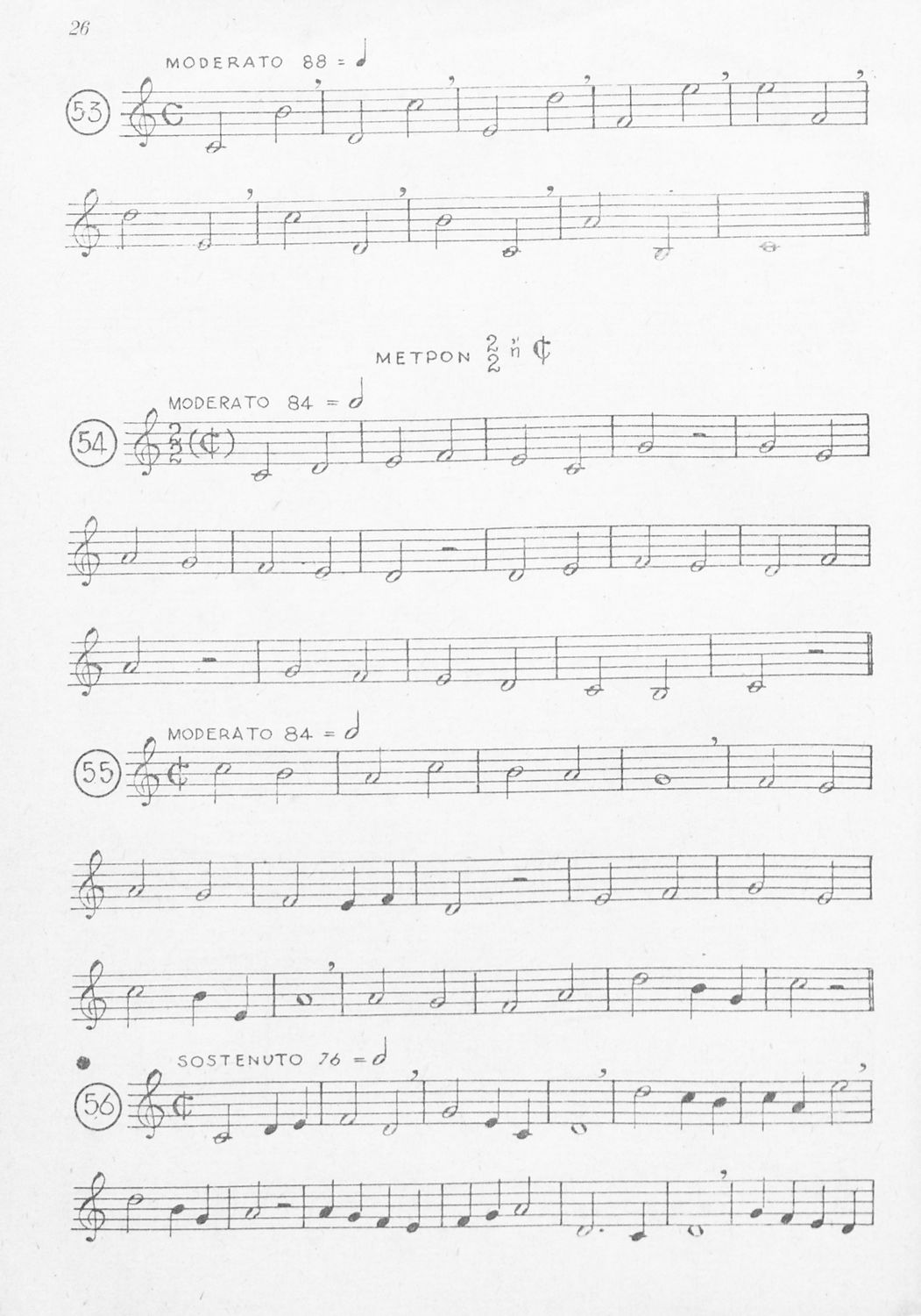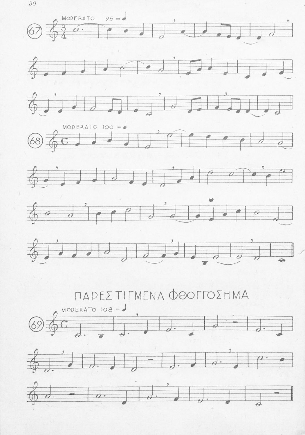 Μαθητικό βοήθημα για τις τάξεις του Γυμνασίου, των Παιδαγωγικών Ακαδημιών και Εκκλησιαστικών Σχολών για το μάθημα της Μουσικής. Το εγχειρίδιο αποτελείται από παρτιτούρες με νότες για την καλύτερη εκμάθηση του μαθήματος της μουσικής. Δίνονται παραδείγματα για το μέτρο, τις παύσεις, τα μουσικά διαστήματα κ.α.
