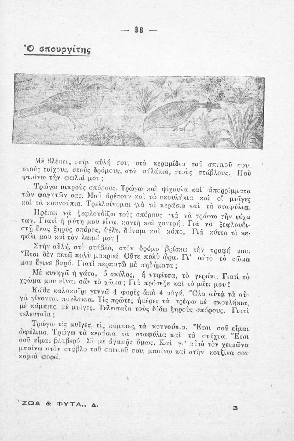 Μαθητικό βοήθημα Ζωολογίας και Φυτολογίας για την Δ΄ Δημοτικού που περιγράφει διάφορα ζώα και φυτά με λογοτεχνική αφήγηση και παιγνιώδη διάθεση.