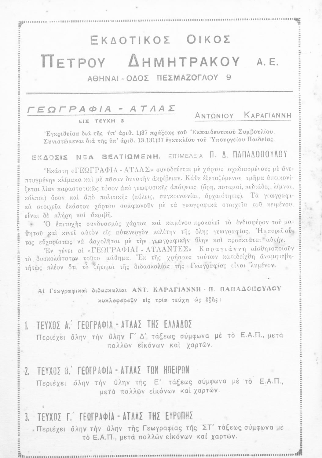 Τίτλος: Γεωγραφικαί Διδασκαλίαι Α΄ Γεωγραφία - Άτλας της Ελλάδος μετά πολλών χαρτών και εικόνων διά την Γ΄ - Δ΄ τάξιν των Δημοτικών Σχολείων