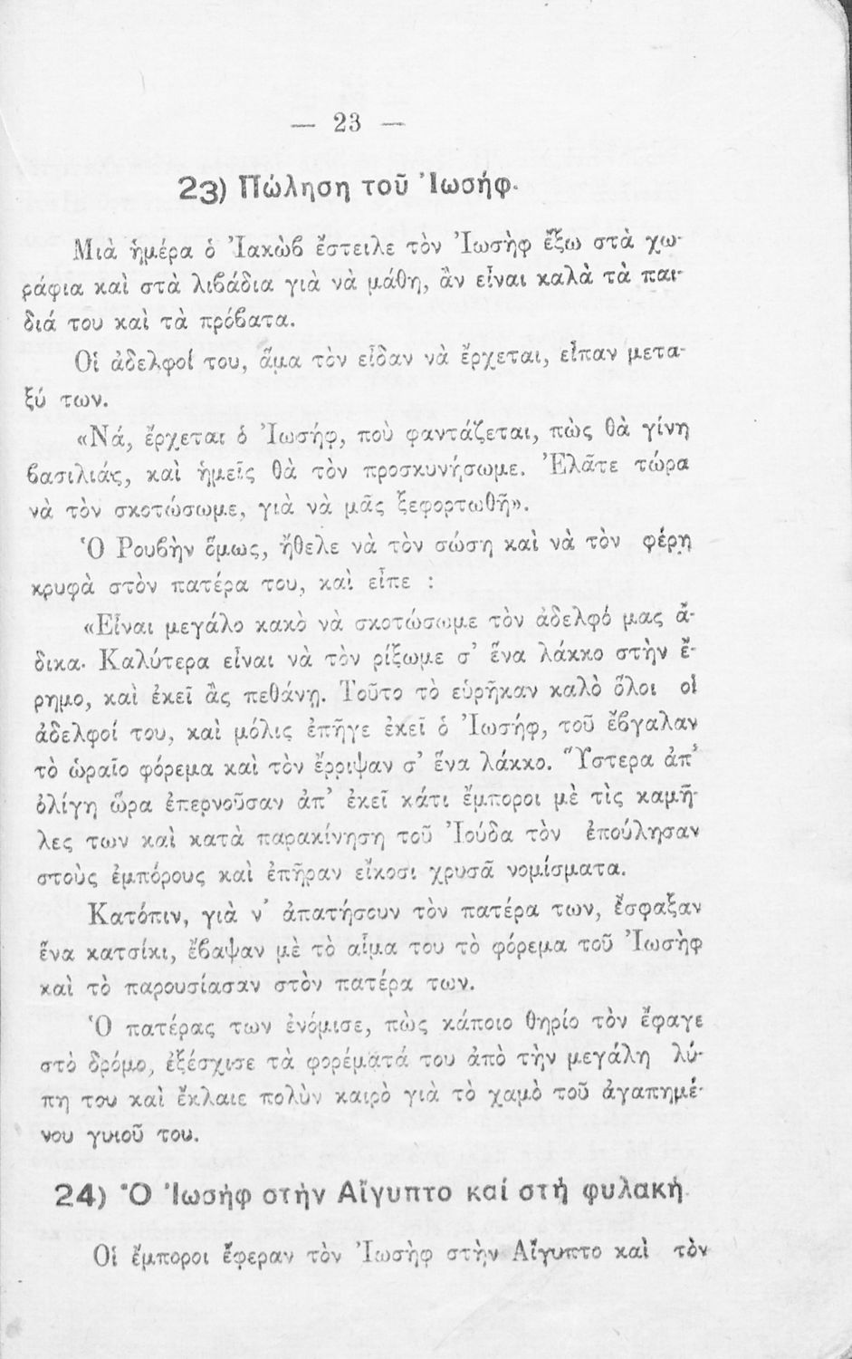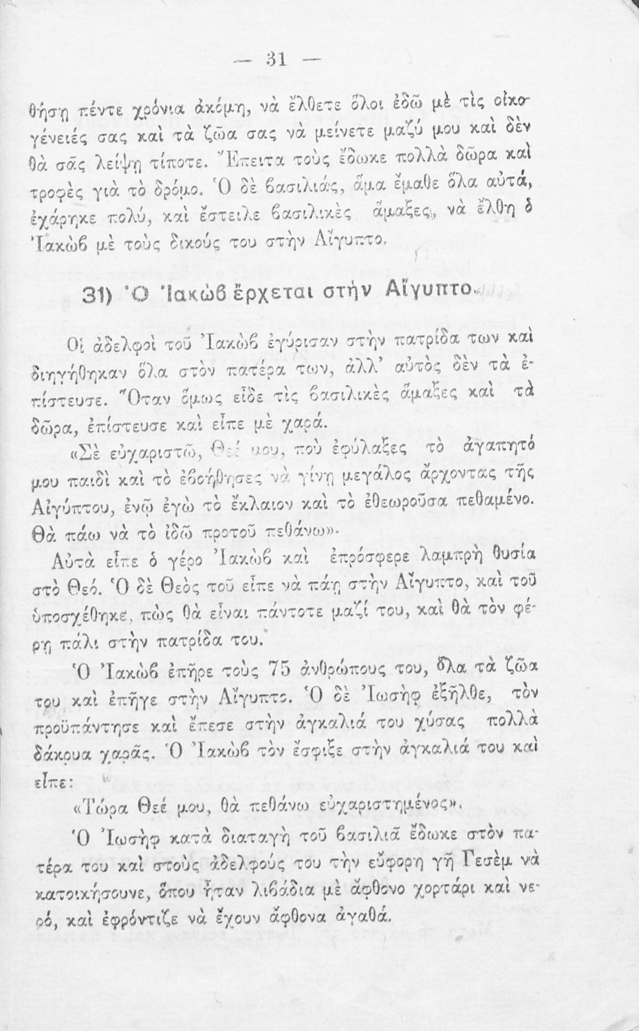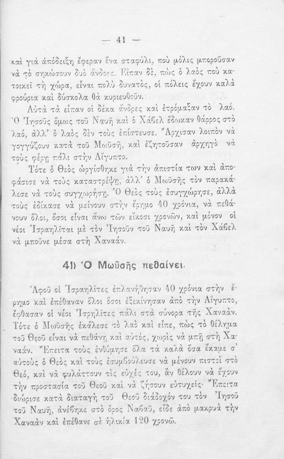 Σχολικό εγχειρίδιο Θρησκευτικών Δημοτικού που συνιστά μία εξιστόρηση της Παλαιάς Διαθήκης από τη δημιουργία του κόσμου ως τους Μακκαβαίους. Περιέχει και ποιήματα θρησκευτικού περιεχομένου.