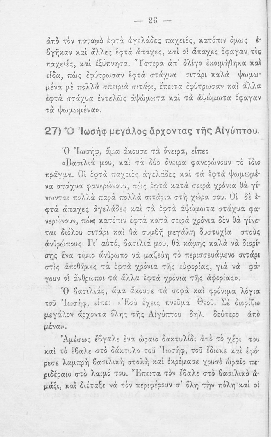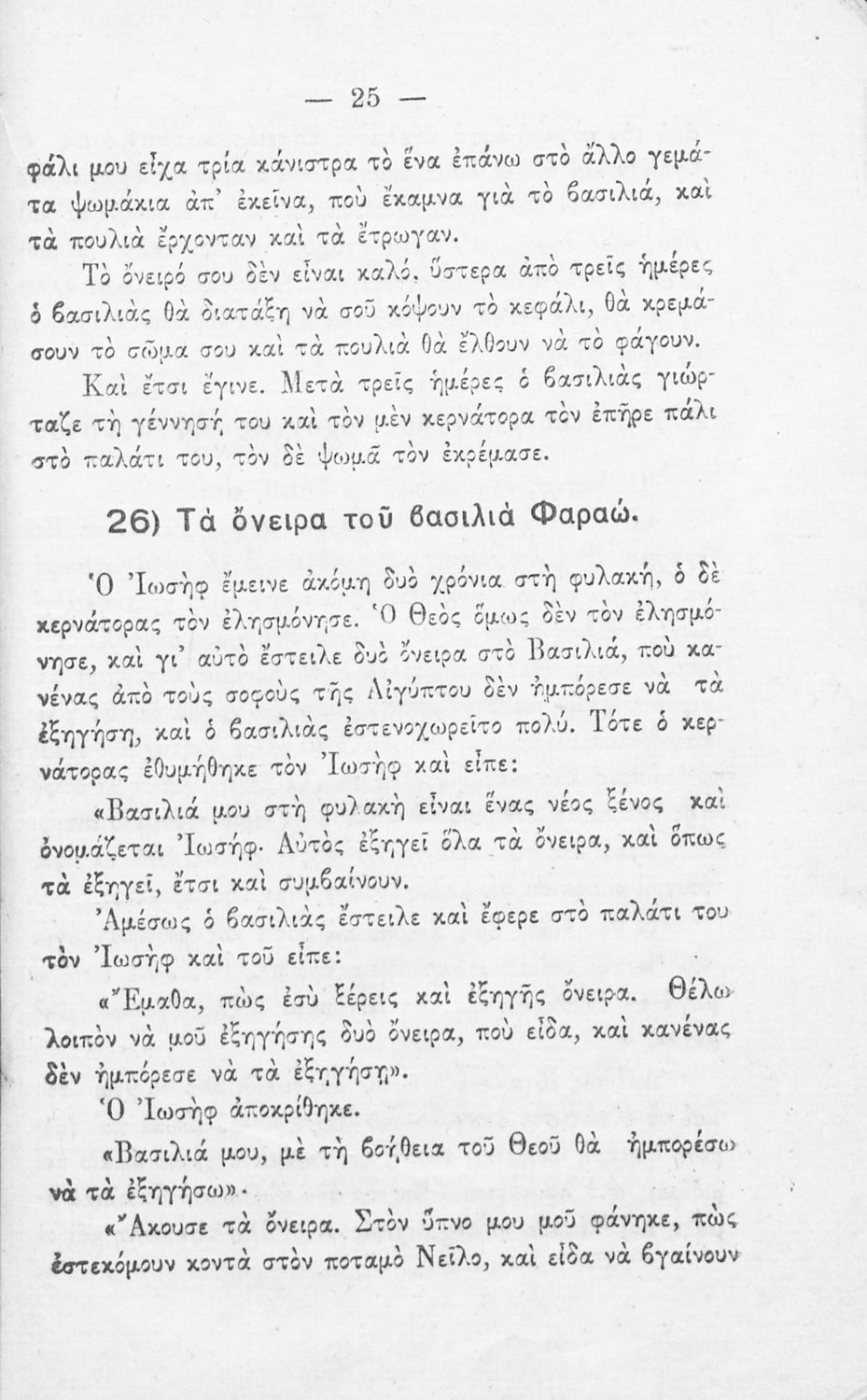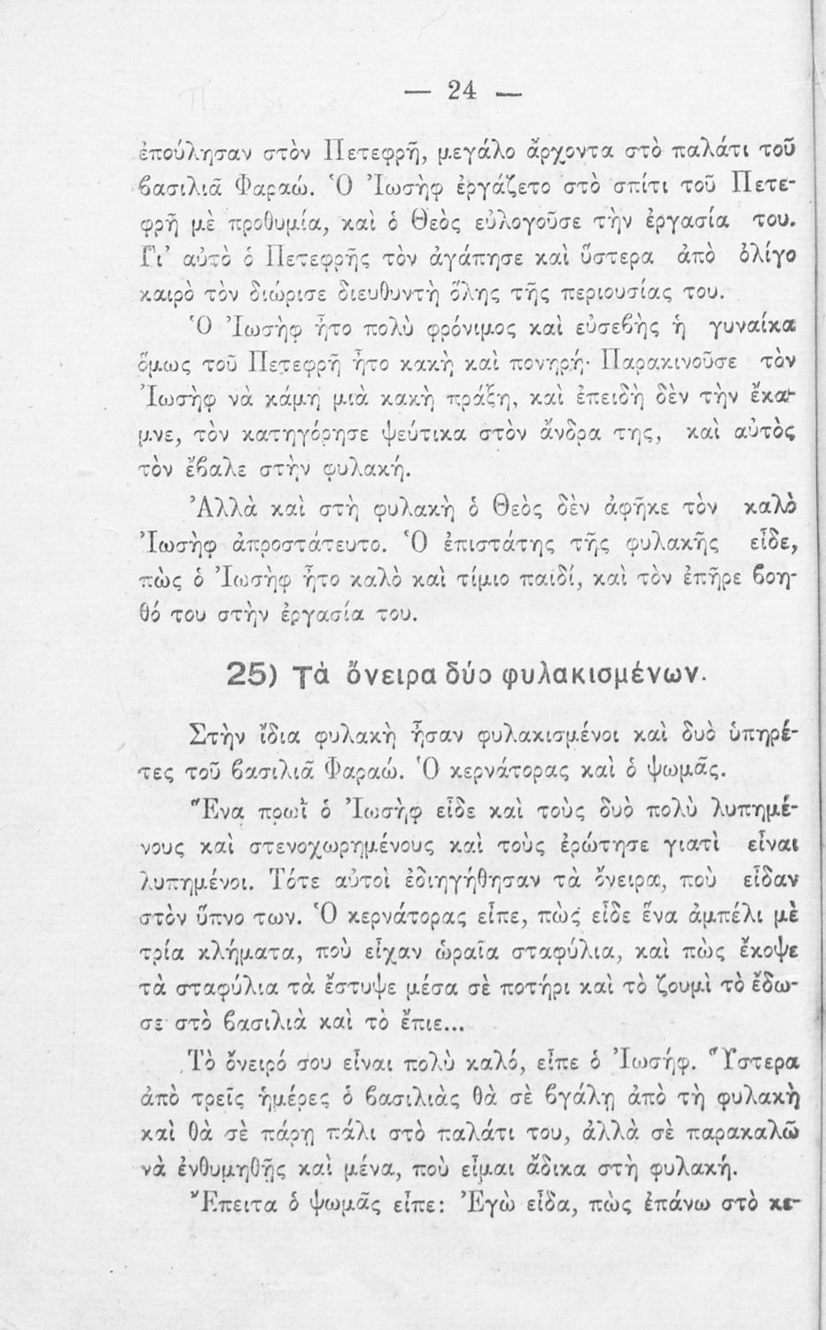 Σχολικό εγχειρίδιο Θρησκευτικών Δημοτικού που συνιστά μία εξιστόρηση της Παλαιάς Διαθήκης από τη δημιουργία του κόσμου ως τους Μακκαβαίους. Περιέχει και ποιήματα θρησκευτικού περιεχομένου.