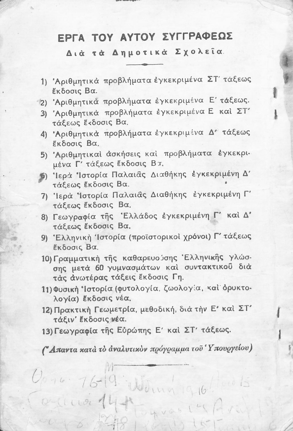 Κωδικός αναγνώρισης: 02-03288 Τίτλος: Ιερά ιστορία της Παλαιάς Διαθήκης προς χρήσιν των μαθητών της Γ΄ τάξεως Δημοτικών Σχολείων Συγγραφέας: Ιωάννης Λάζος Μέγεθος και υπόστρωμα: Μαθητικό βοήθημα, μαλακό εξώφυλλο, 68 σελίδες. |