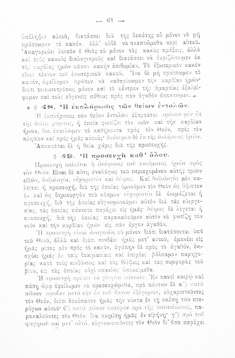 Σχολικό εγχειρίδιο Θρησκευτικών για τα Ελληνικά Σχολεία και Παρθεναγωγεία που περιλαμβάνει εισαγωγή στην Παλαιά και Καινή Διαθήκη και πραγματεύεται δογματικά και ηθικά ζητήματα της ορθόδοξης κατήχησης. Είχε εγκριθεί από την Ιερά Σύνοδο.