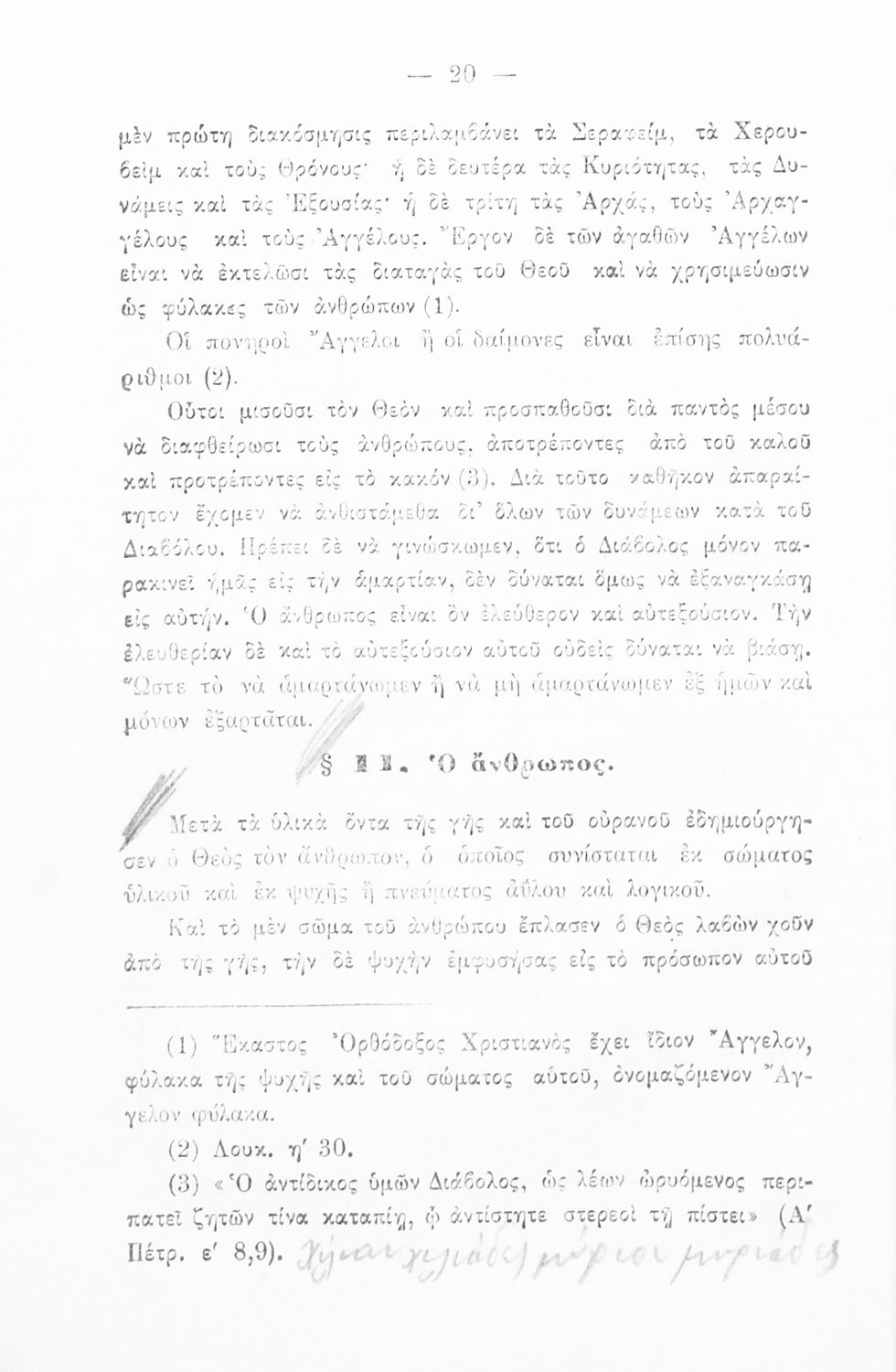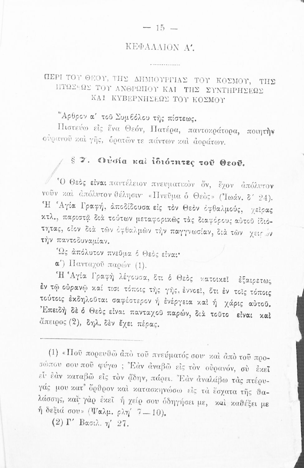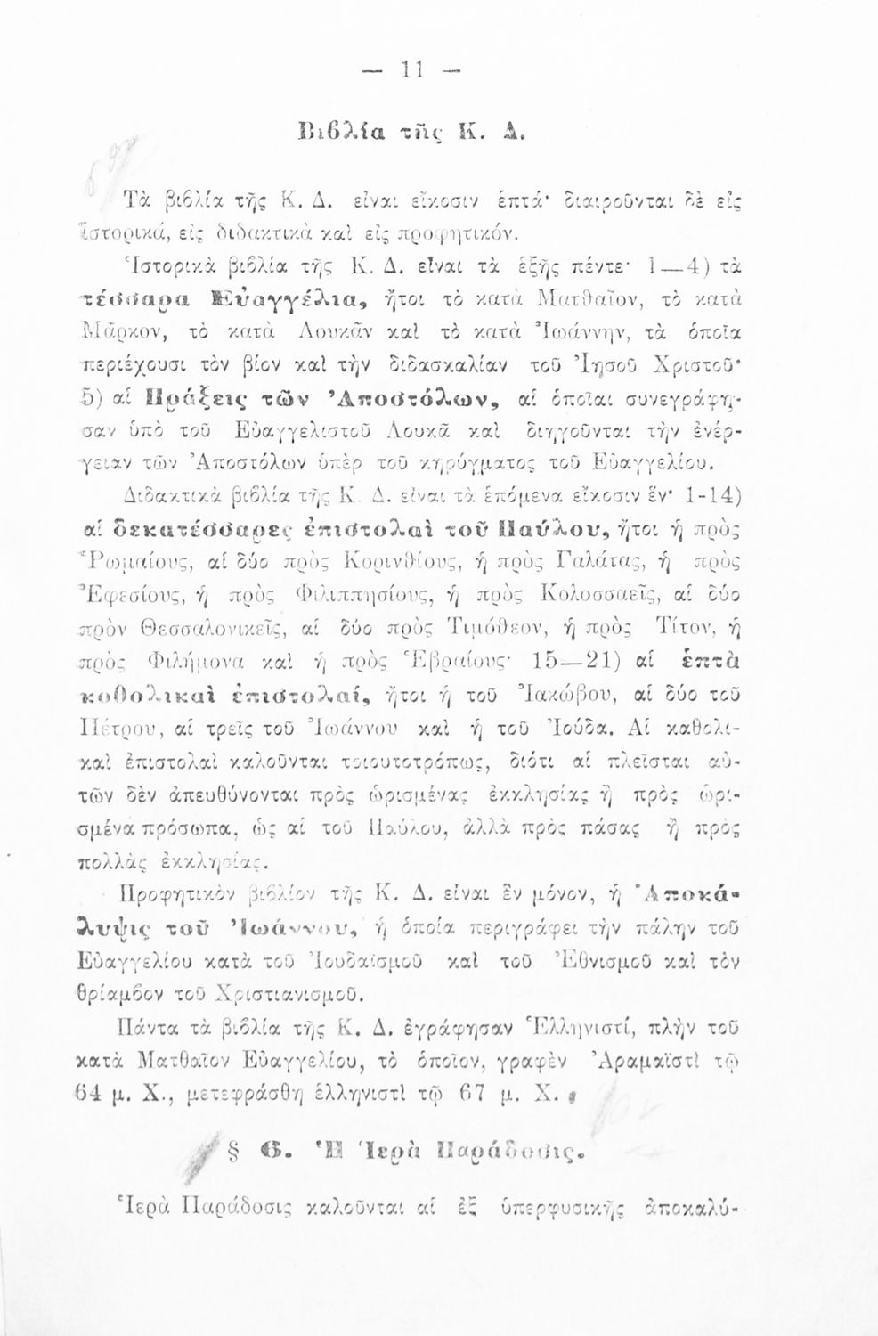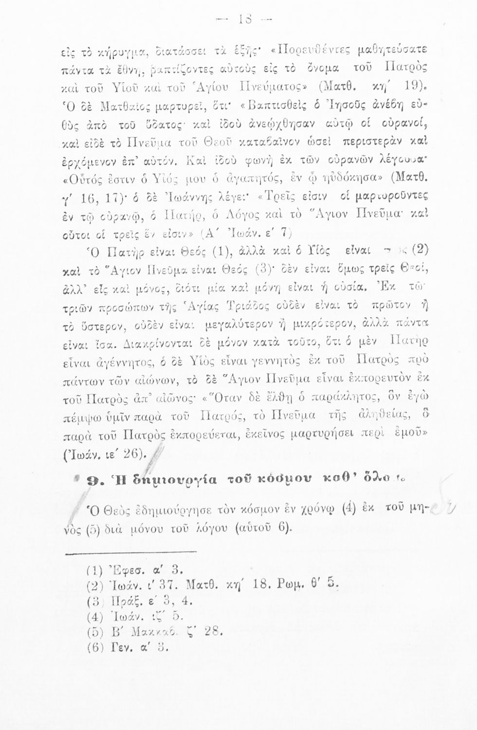 Βαθμίδα εκπαίδευσης: Δευτεροβάθμια Τάξη: Ελληνικό Σχολείο / Παρθεναγωγείο Μάθημα: Θρησκευτικά Γλώσσα: Καθαρεύουσα Παρουσίαση περιεχομένου: Σχολικό εγχειρίδιο Θρησκευτικών για τα Ελληνικά Σχολεία και Παρθεναγωγεία που περιλαμβάνει εισαγωγή στην Παλαιά και Καινή Διαθήκη και πραγματεύεται δογματικά και ηθικά ζητήματα της ορθόδοξης κατήχησης. Είχε εγκριθεί από την Ιερά Σύνοδο. |