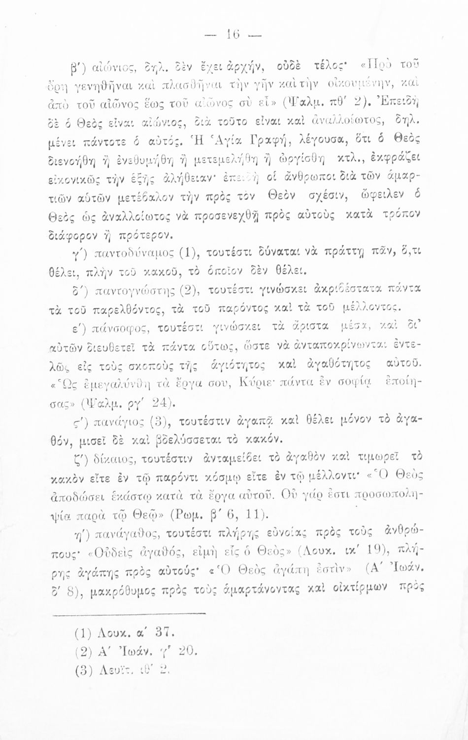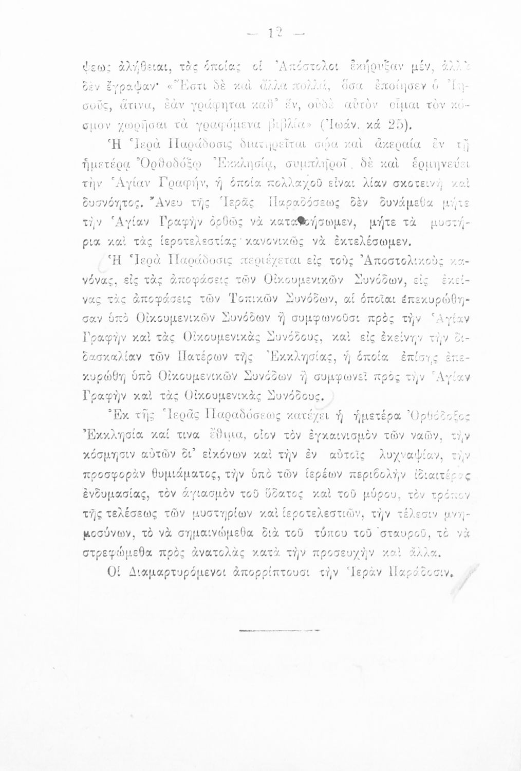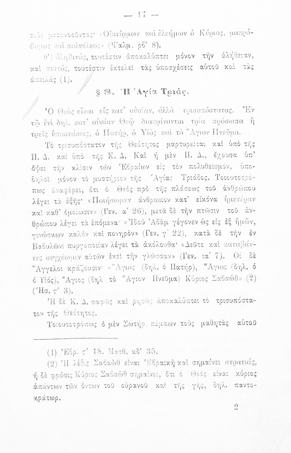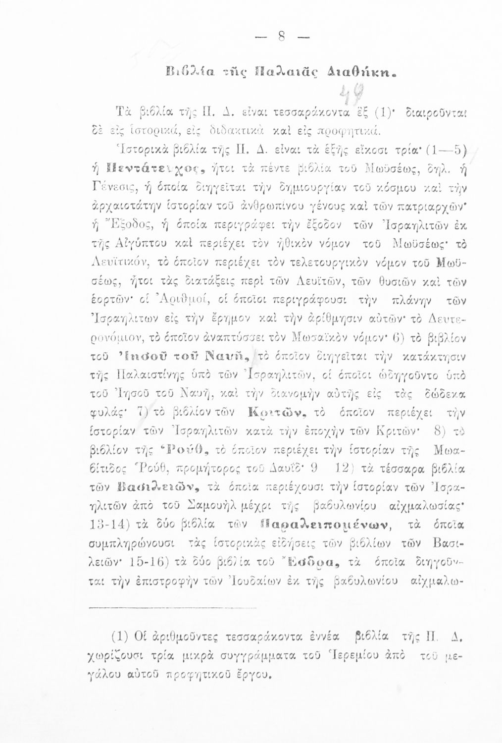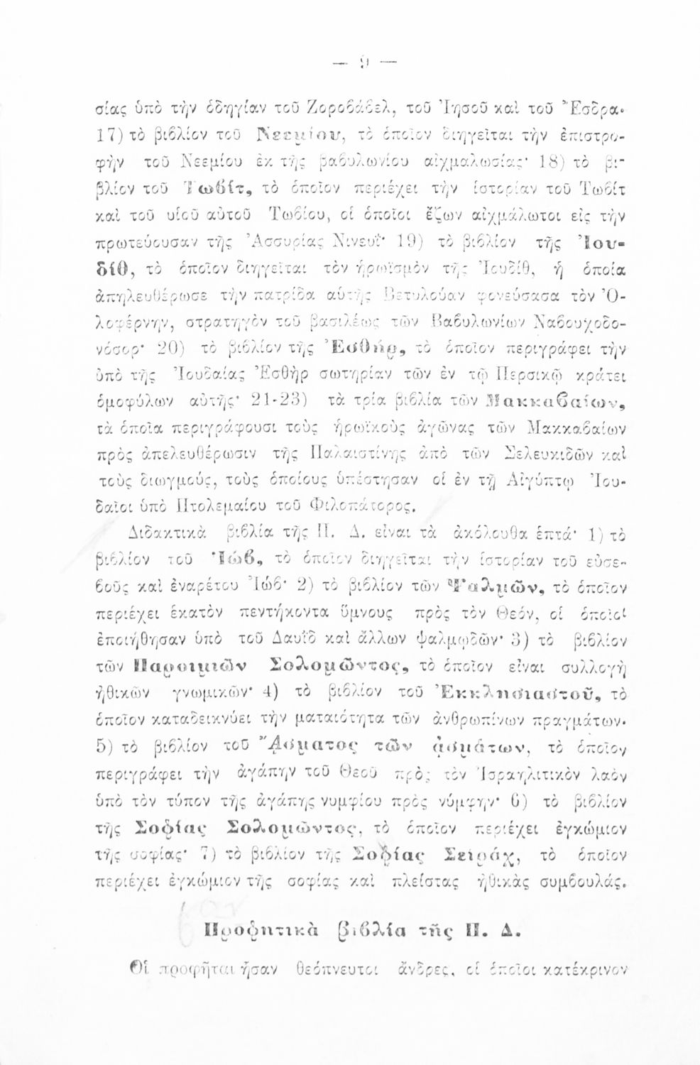 Βαθμίδα εκπαίδευσης: Δευτεροβάθμια Τάξη: Ελληνικό Σχολείο / Παρθεναγωγείο Μάθημα: Θρησκευτικά Γλώσσα: Καθαρεύουσα Παρουσίαση περιεχομένου: Σχολικό εγχειρίδιο Θρησκευτικών για τα Ελληνικά Σχολεία και Παρθεναγωγεία που περιλαμβάνει εισαγωγή στην Παλαιά και Καινή Διαθήκη και πραγματεύεται δογματικά και ηθικά ζητήματα της ορθόδοξης κατήχησης. Είχε εγκριθεί από την Ιερά Σύνοδο. |
