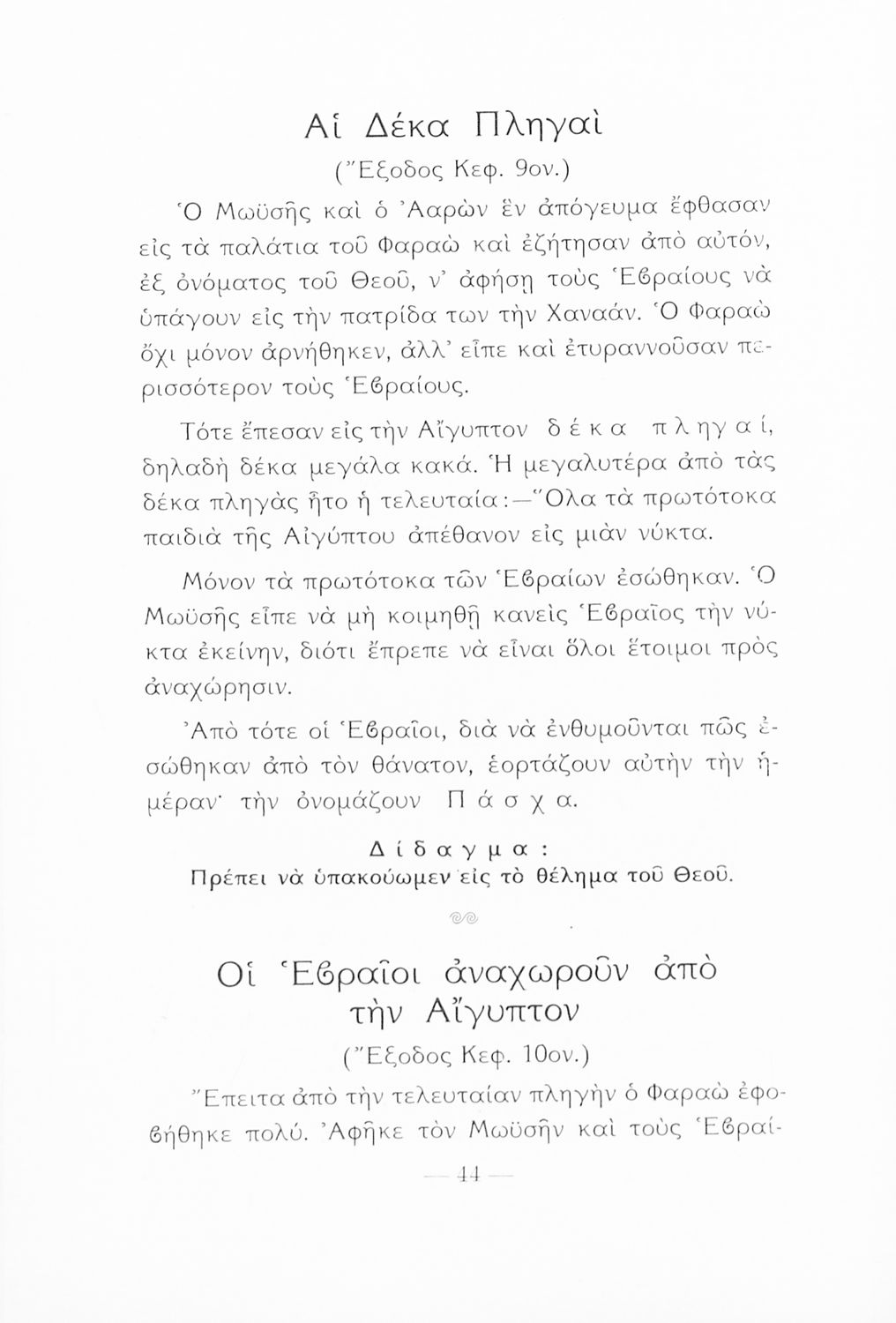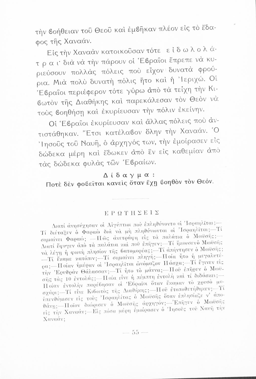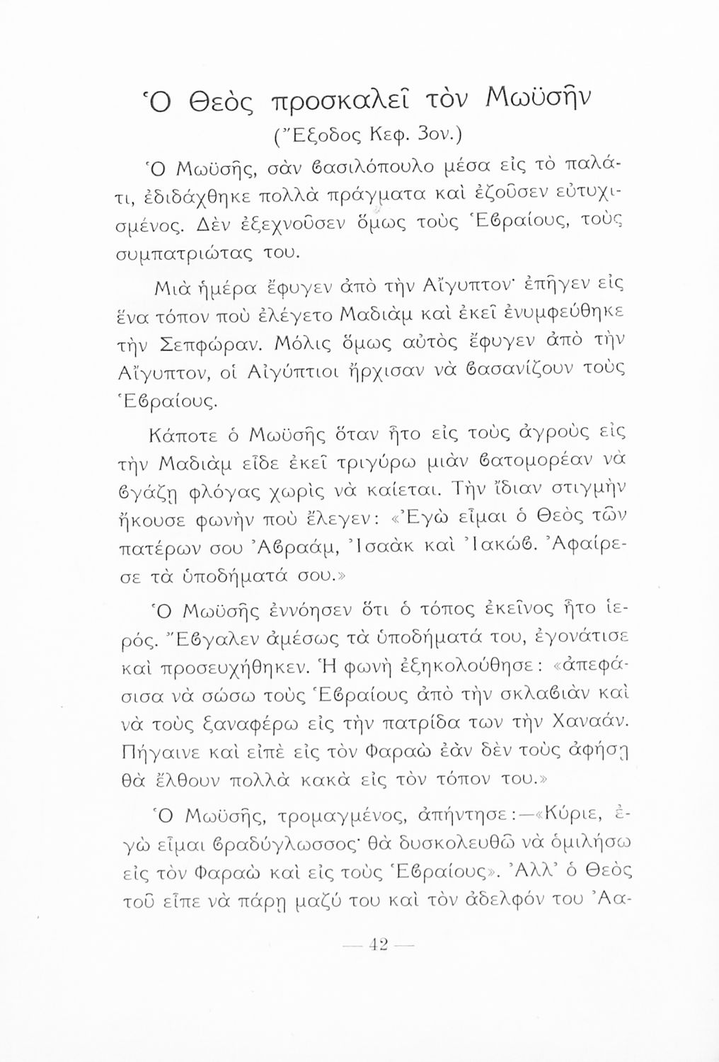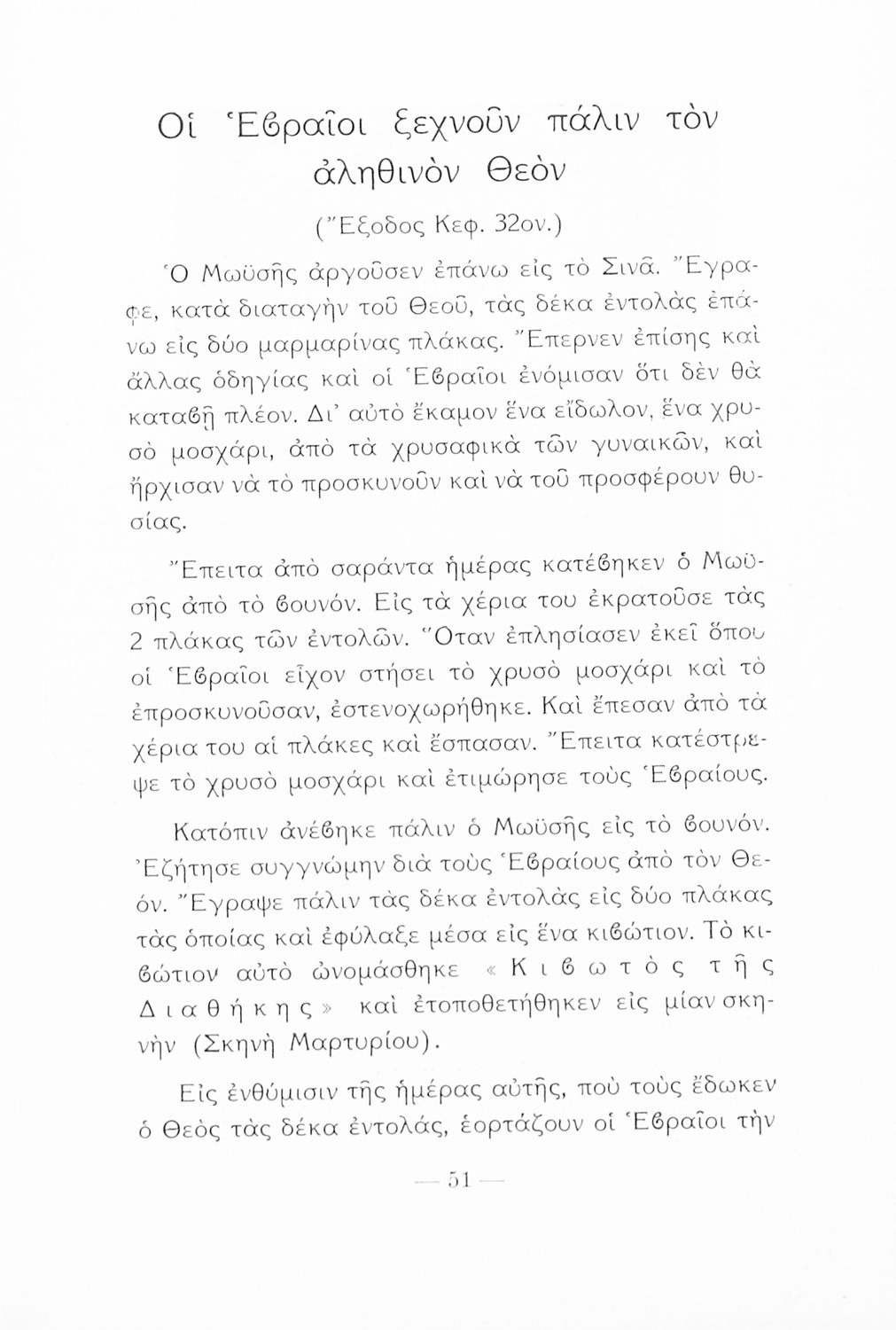 Σχολικό εγχειρίδιο Θρησκευτικών για τα Δημοτικά και Ελληνικά Σχολεία που περιλαμβάνει την ιστορία της Παλαιάς και της Καινής Διαθήκης από την δημιουργία του κόσμου μέχρι και την ανάληψη του Ιησού Χριστού.
