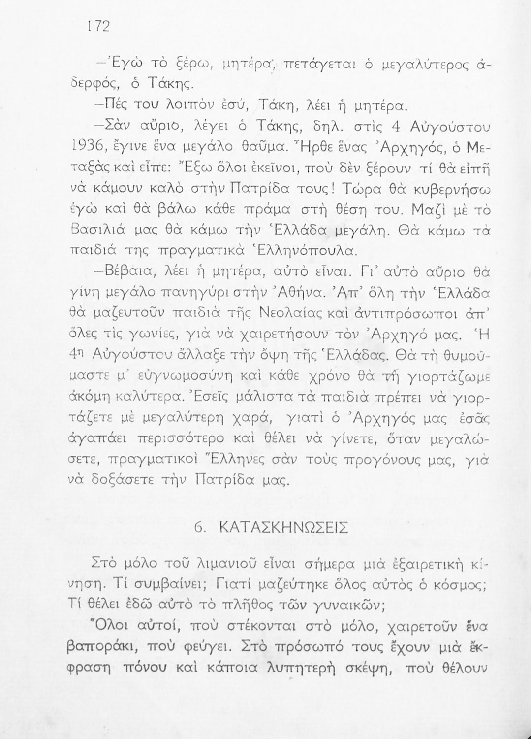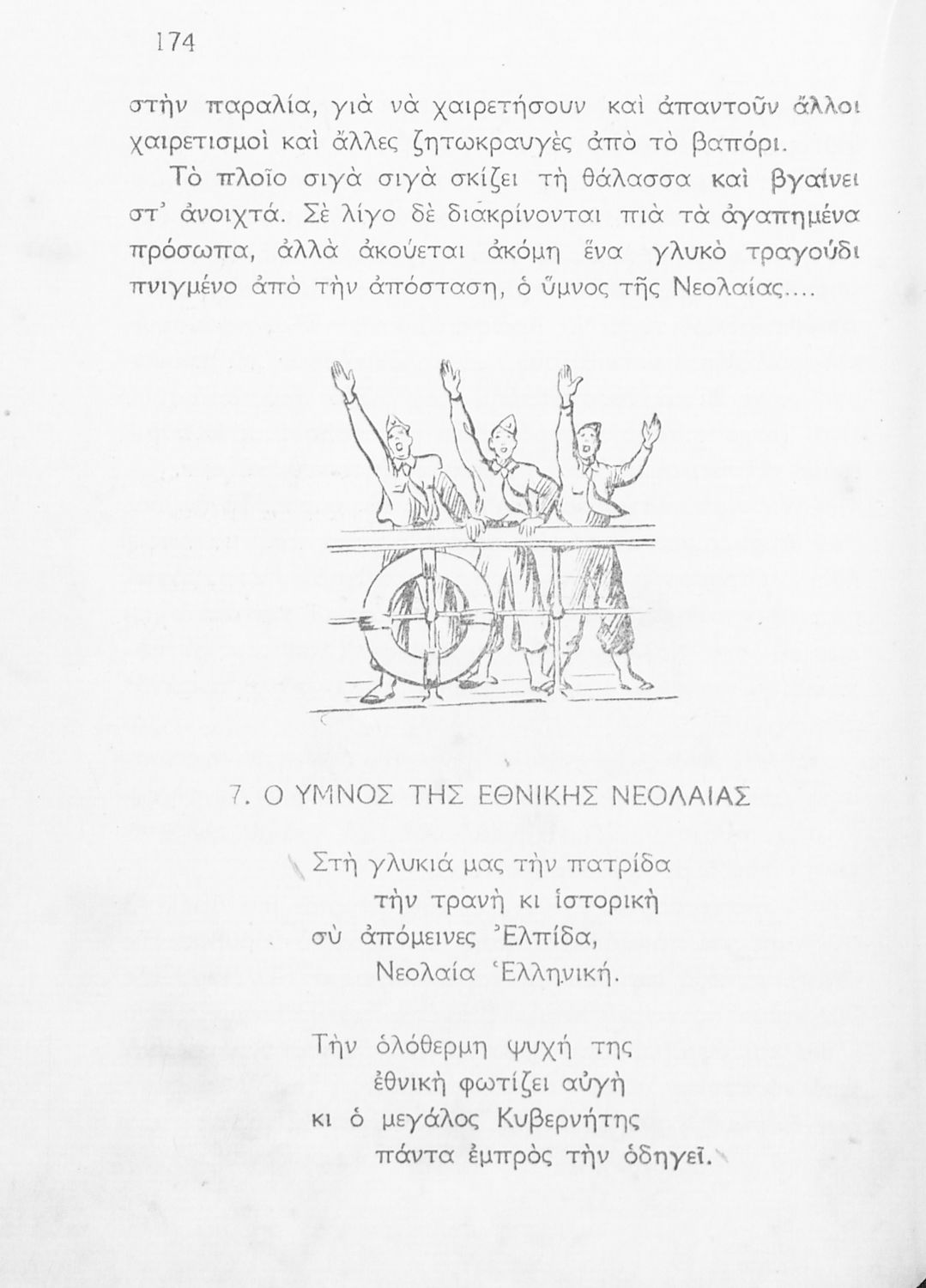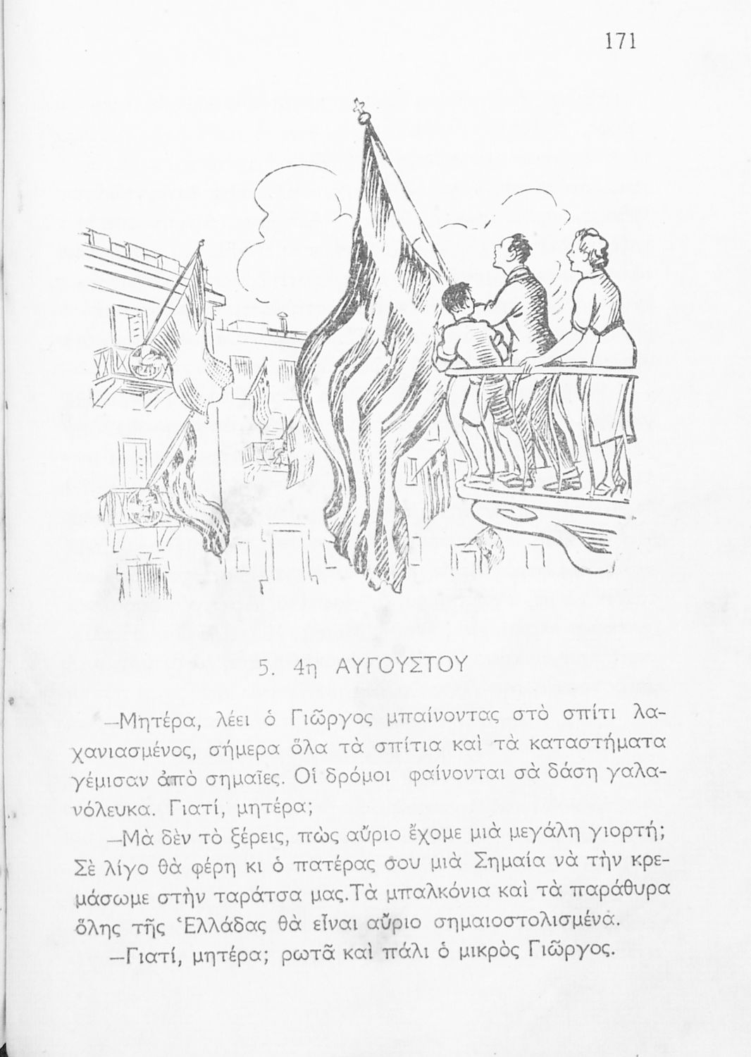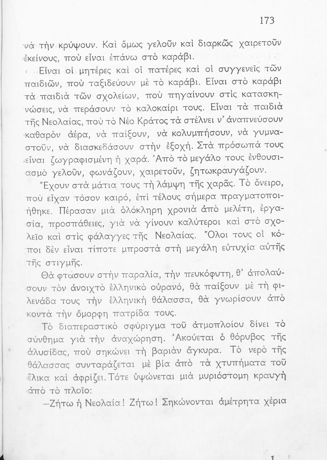 Αναγνωστικό Γ΄ Δημοτικού που περιλαμβάνει ποιήματα και πεζά εμπνευσμένα από τη ζωή της υπαίθρου, την οικογενειακή και κοινωνική ζωή και το εθνικό παρελθόν. Αποτυπώνει τις ιδεολογικές προκείμενες του μεταξικού καθεστώτος τόσο όσον αφορά το περιεχόμενο (“Ο στρατός περνά”, “4η Αυγούστου” και “Ύμνος της Εθνικής Νεολαίας”) όσο και την εικονογράφηση καθώς το εξώφυλλο του βιβλίου κοσμείται από τον χαρακτηριστικό φασιστικό χαιρετισμό δύο παιδιών.