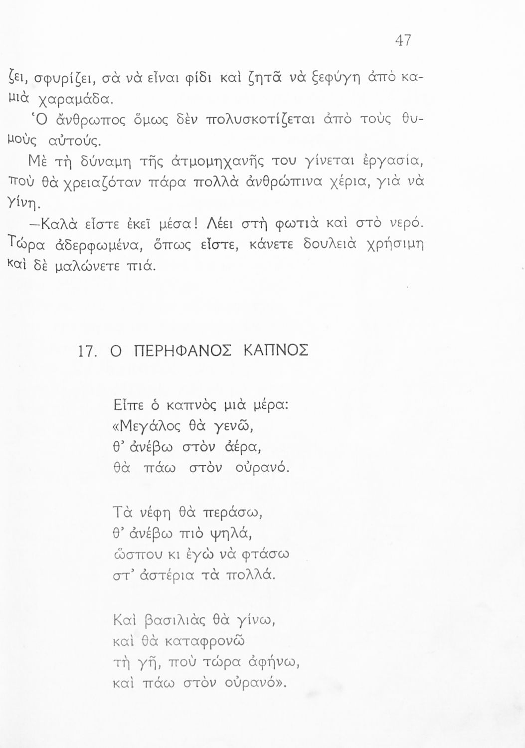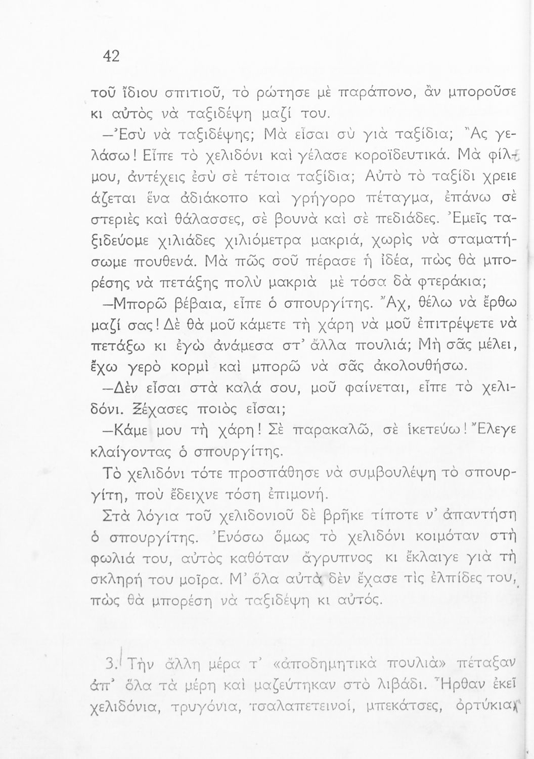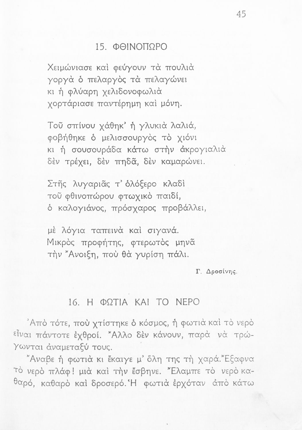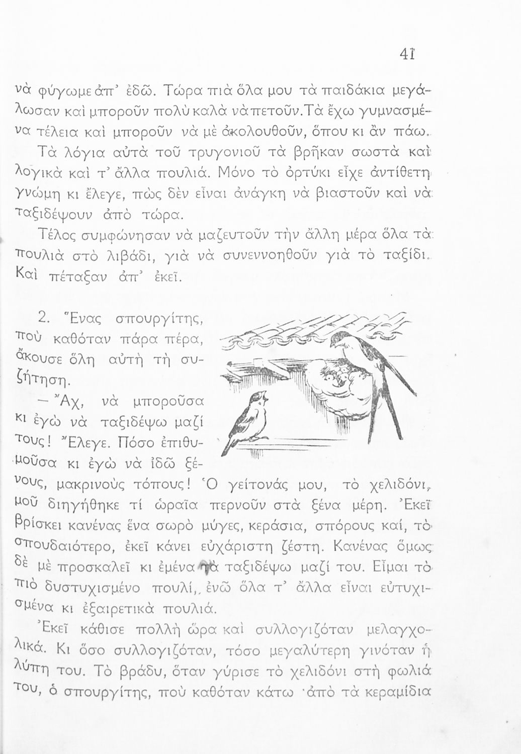 Αναγνωστικό Γ' Δημοτικού που περιέχει πεζά και ποιήματα εμπνευσμένα από τη θρησκευτική, εθνική, κοινωνική και ατομική ζωή, και την ελληνική φύση, ιστορία και μυθολογία.