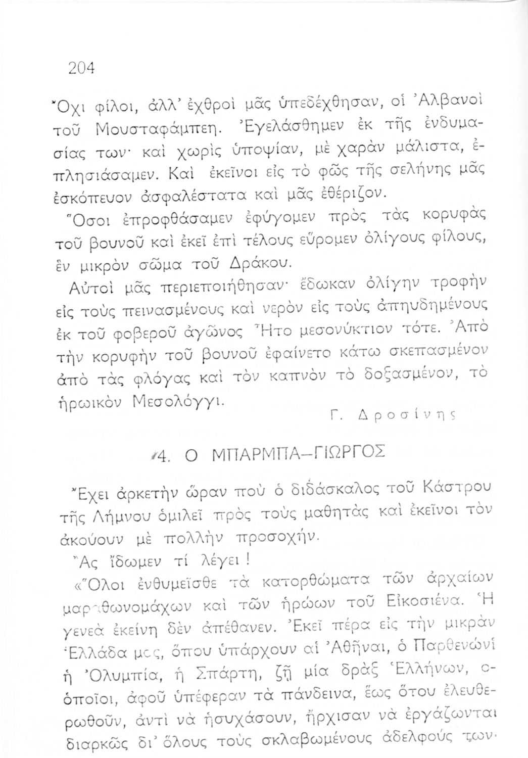 Αναγνωστικό της ΣΤ΄ Δημοτικού που περιλαμβάνει ποιήματα και πεζά που αντλούν τα θέματά τους από την σύγχρονη ελληνική ιστορία, την ελληνική μυθολογία και τη χριστιανική θρησκεία. Περιέχει και ειδικά κεφάλαια που αναφέρονται σε ζητήματα υγείας, γεωργίας και αγωγής του πολίτη.