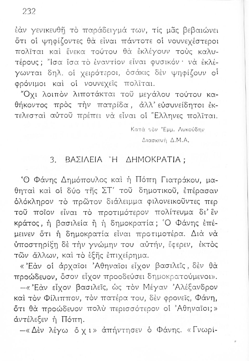 Αναγνωστικό της ΣΤ΄ Δημοτικού που κυκλοφόρησε σε 7.000 αντίτυπα 25 ημέρες πριν την 4η Αυγούστου 1936, οπότε κατά την επόμενη σχολική χρονιά διδάχτηκε ελάχιστα και η έκδοσή του με αυτή την μορφή σταμάτησε.