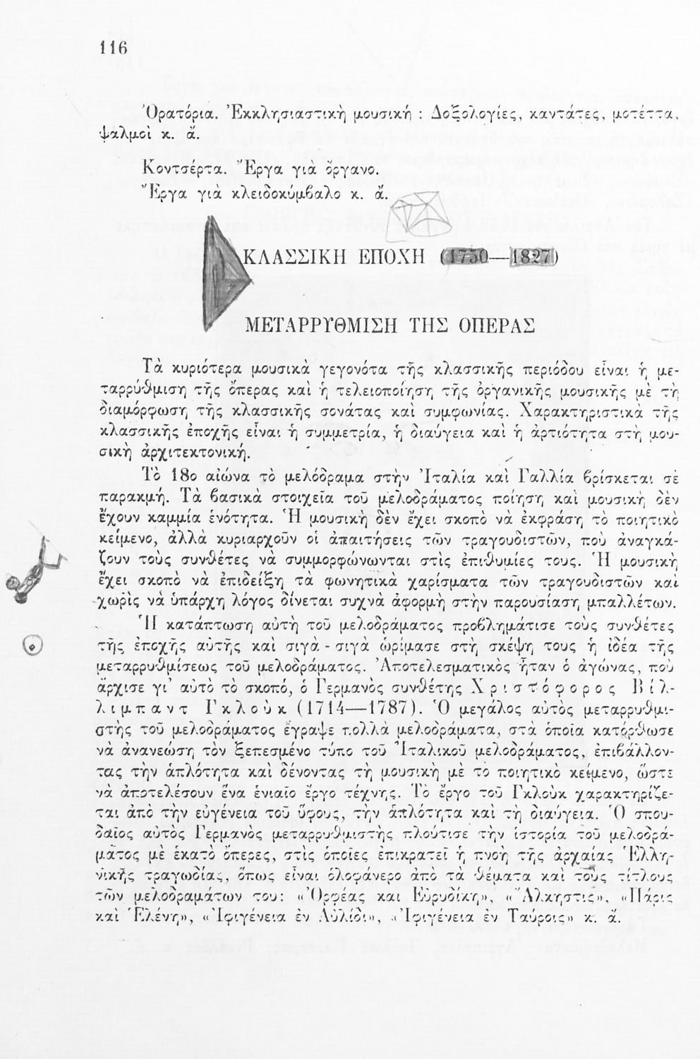 Βαθμίδα εκπαίδευσης: Δευτεροβάθμια Τάξη: Δ' Γυμνασίου Μάθημα: Μουσική Γλώσσα: Δημοτική Παρουσίαση περιεχομένου: Σχολικό εγχειρίδιο Μουσικής της Δ ' Γυμνασίου. Το βιβλίο περιέχει θεωρία της μουσικής αλλά και την εξέλιξη της μουσικής από την αρχαία Ελλάδα μέχρι και το Διαφωτισμό και τη σύγχρονη μουσική παρουσιάζοντας του σημαντικότερους συνθέτες. Τέλος, το βιβλίο κάνει μια σύντομη παρουσίαση των σημαντικότερων Ελλήνων συνθετών μέσα από τα έργα τους. |