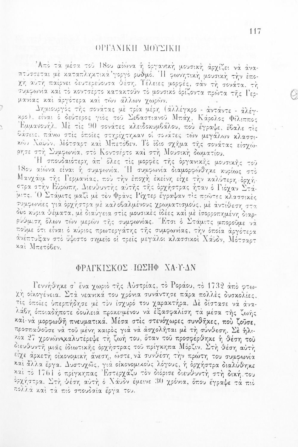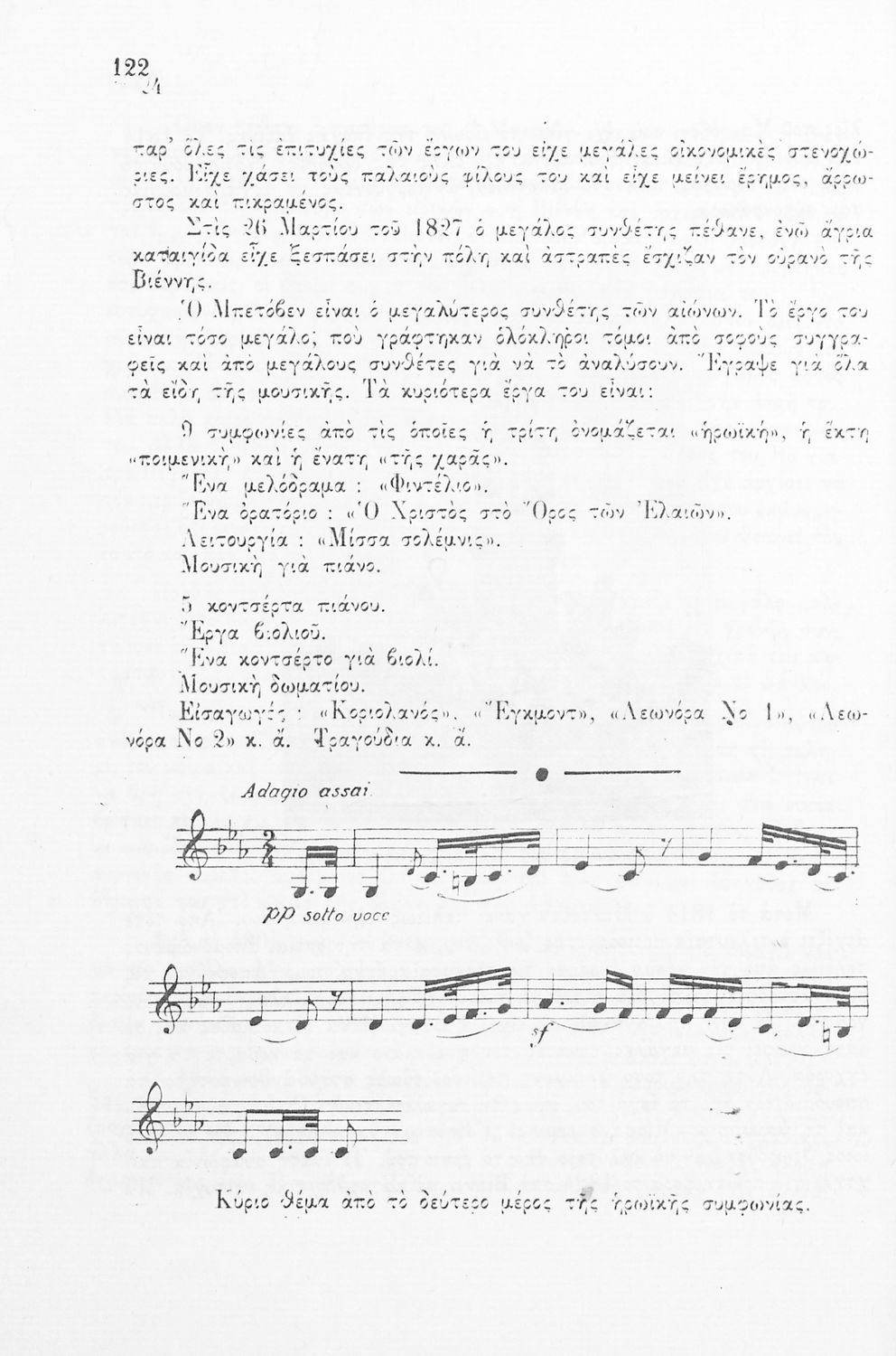 Σχολικό εγχειρίδιο Μουσικής της Δ ' Γυμνασίου. Το βιβλίο περιέχει θεωρία της μουσικής αλλά και την εξέλιξη της μουσικής από την αρχαία Ελλάδα μέχρι και το Διαφωτισμό και τη σύγχρονη μουσική παρουσιάζοντας του σημαντικότερους συνθέτες. Τέλος, το βιβλίο κάνει μια σύντομη παρουσίαση των σημαντικότερων Ελλήνων συνθετών μέσα από τα έργα τους.