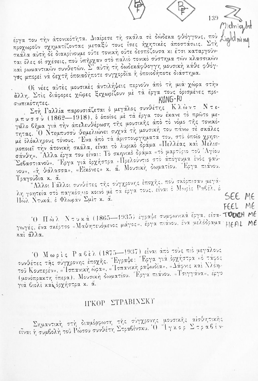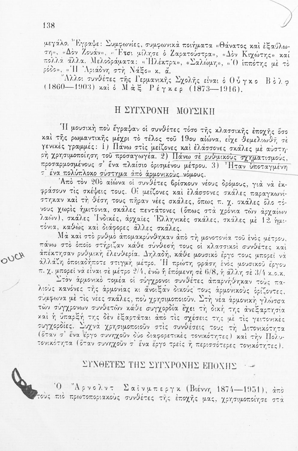Σχολικό εγχειρίδιο Μουσικής κατά το αναλυτικόν πρόγραμμα του Υπουργείου Παιδείας. Περιέχει Θεωρία- Σολφέζ- Τραγούδι- Οργανολογία- Μορφολογία και Ιστορία της Μουσικής.