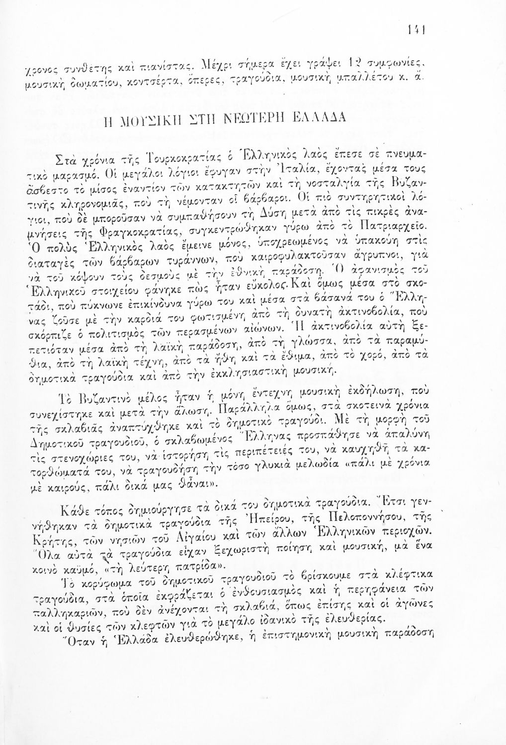 Σχολικό εγχειρίδιο Μουσικής για την Α΄, Β΄ Γυμνασίου, Ανώτερων Παρθεναγωγείων και Α΄ τάξη Διδασκαλείων. Σύστημα διδασκαλίας της Μουσικής με σχετική εγκυκλοπαίδεια σε τρία τεύχη. Ο συγγραφέας υπήρξε καθηγητής ...
