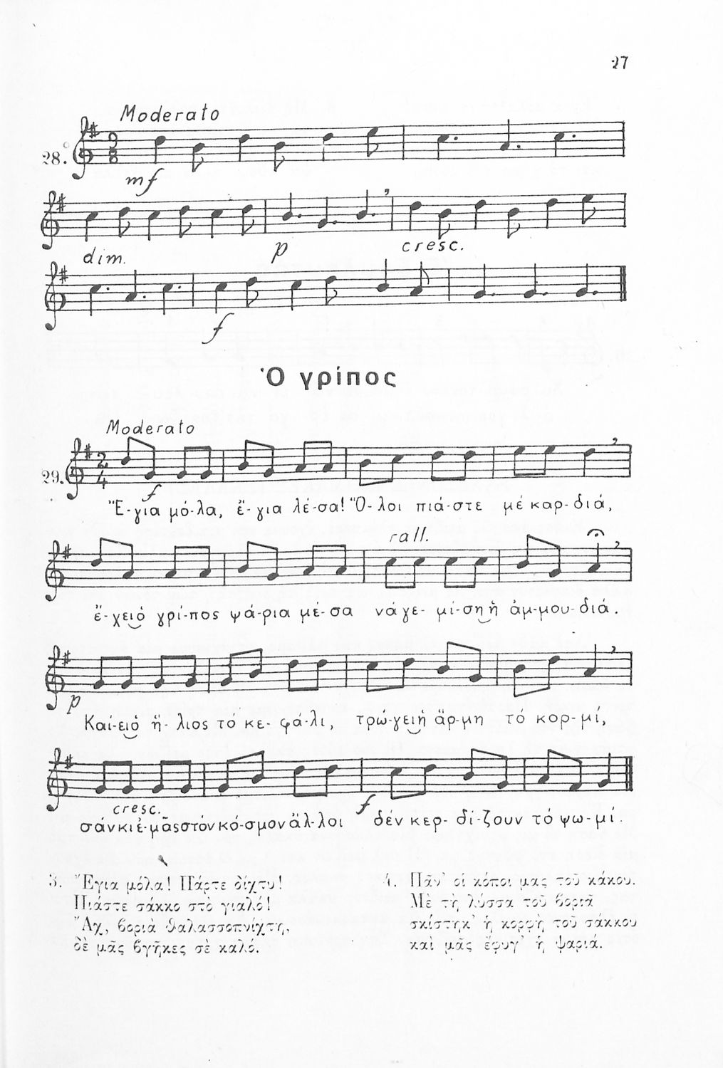 Σχολικό εγχειρίδιο Μουσικής για τις Β', Γ', Δ' Γυμνάσιου. Περιέχει ασκήσεις μελωδικές, χωρίς θεωρία. Ο συγγραφέας υπήρξε καθηγητής της Ραλλείου Παιδαγωγικής Ακαδημίας Πειραιά. Περιέχει θεωρία-μελωδικές ...