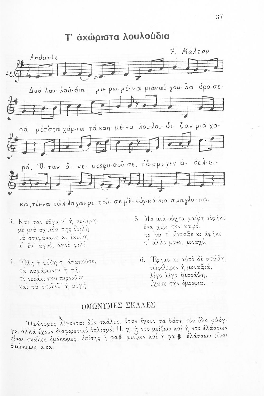 Σχολικό εγχειρίδιο Μουσικής κατά το αναλυτικόν πρόγραμμα του Υπουργείου Παιδείας. Περιέχει Θεωρία- Σολφέζ- Τραγούδι- Οργανολογία- Μορφολογία και Ιστορία της Μουσικής.