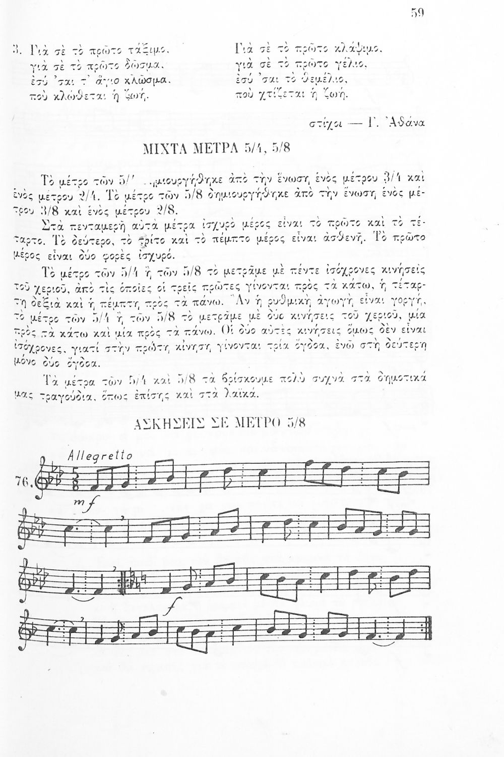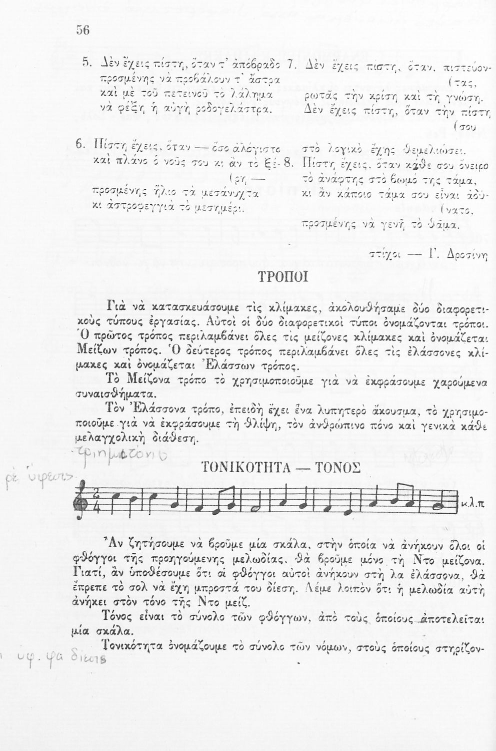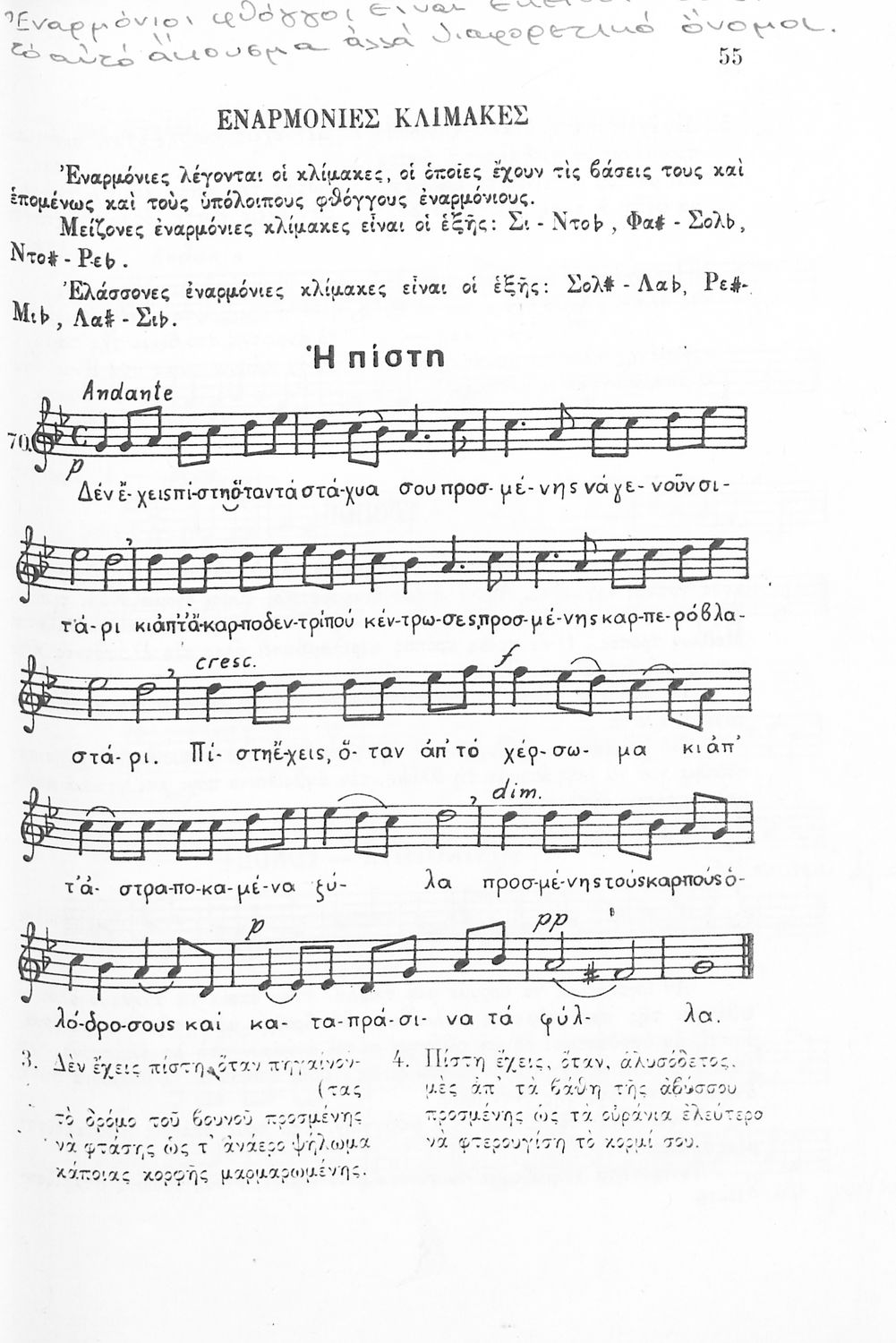 Σχολικό εγχειρίδιο Μουσικής της Δ ' Γυμνασίου. Το βιβλίο περιέχει θεωρία της μουσικής αλλά και την εξέλιξη της μουσικής από την αρχαία Ελλάδα μέχρι και το Διαφωτισμό και τη σύγχρονη μουσική παρουσιάζοντας του σημαντικότερους συνθέτες. Τέλος, το βιβλίο κάνει μια σύντομη παρουσίαση των σημαντικότερων Ελλήνων συνθετών μέσα από τα έργα τους.