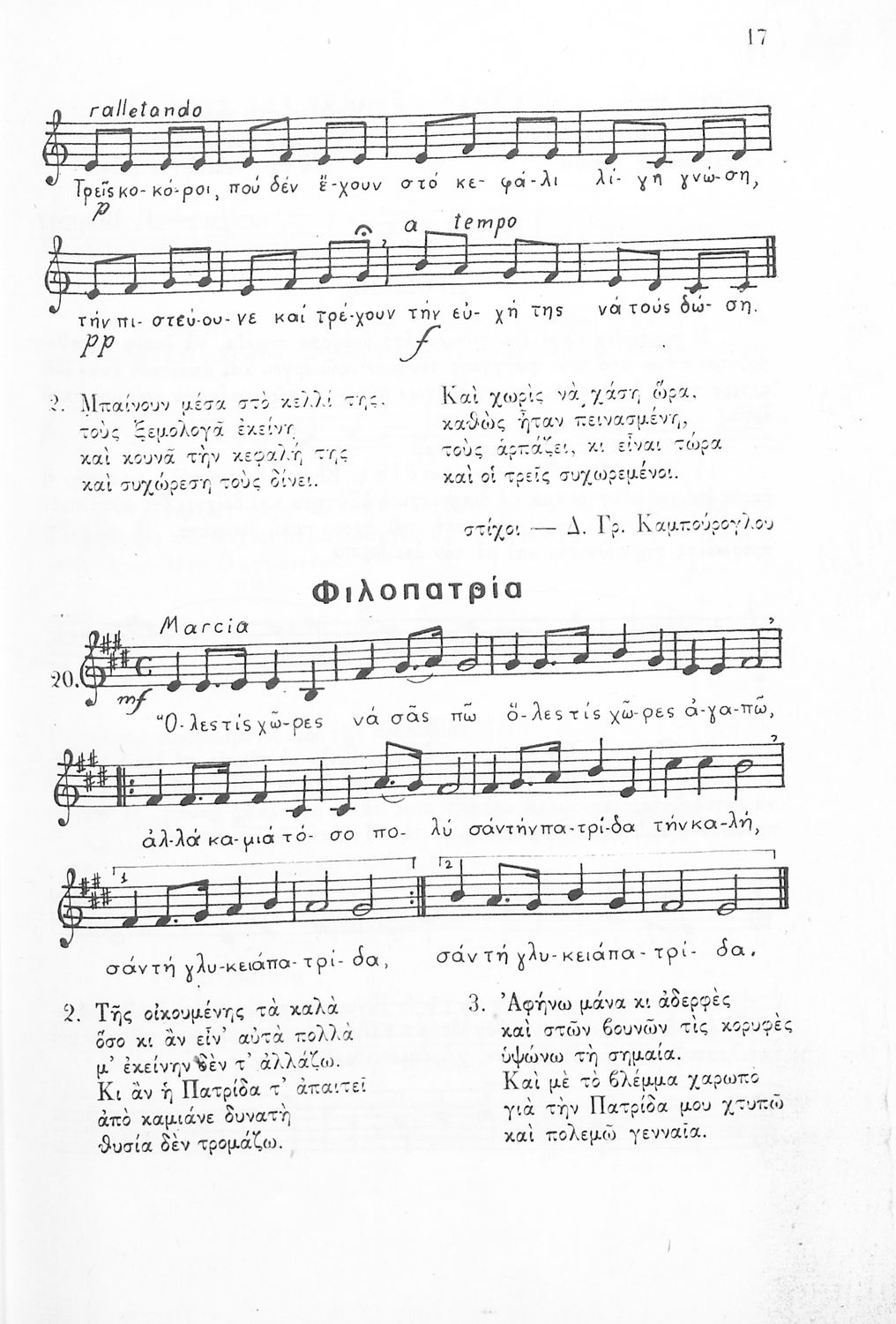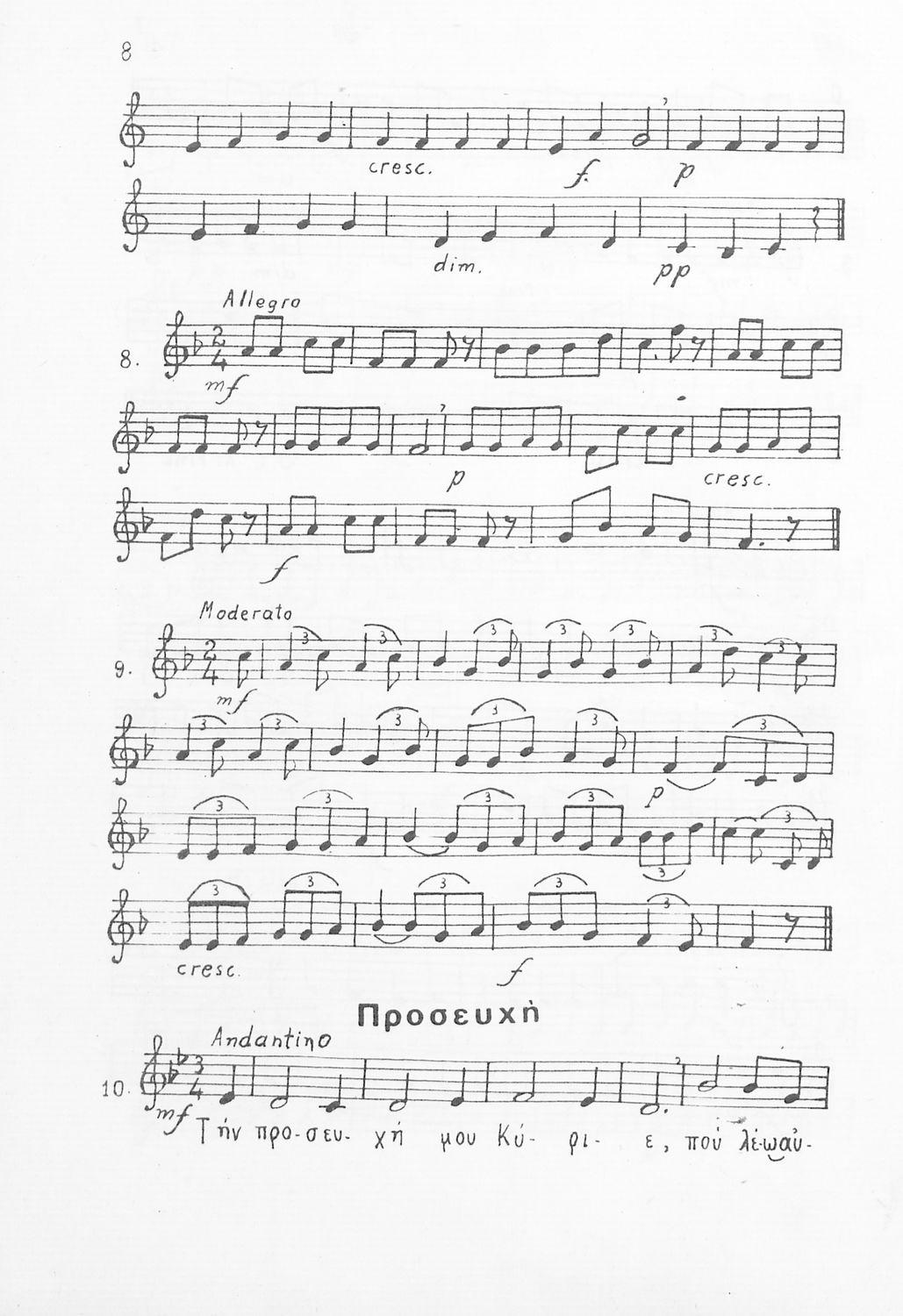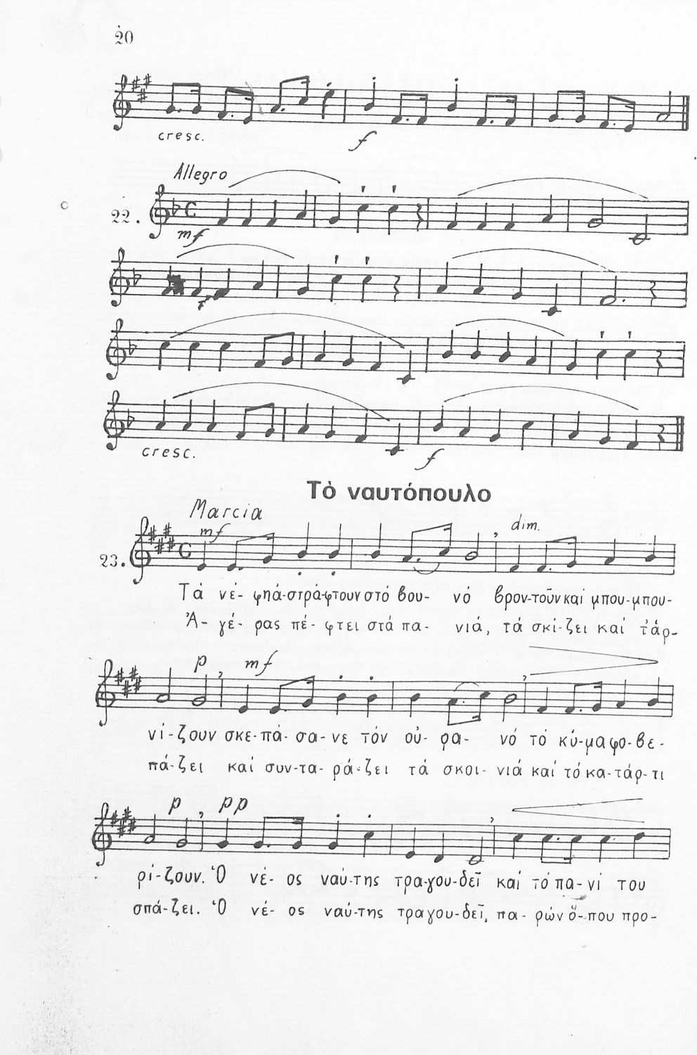 Σχολικό εγχειρίδιο Μουσικής για τις Α΄, Β΄, Γ΄, Δ΄ τάξη Γυμνασίου, Πρακτικών Λυκείων και Διδασκαλείων που περιλαμβάνει θεωρία, μελωδικές ασκήσεις καθώς και σχολικά τραγούδια. Ο συγγραφέας ήταν καθηγητής της ...