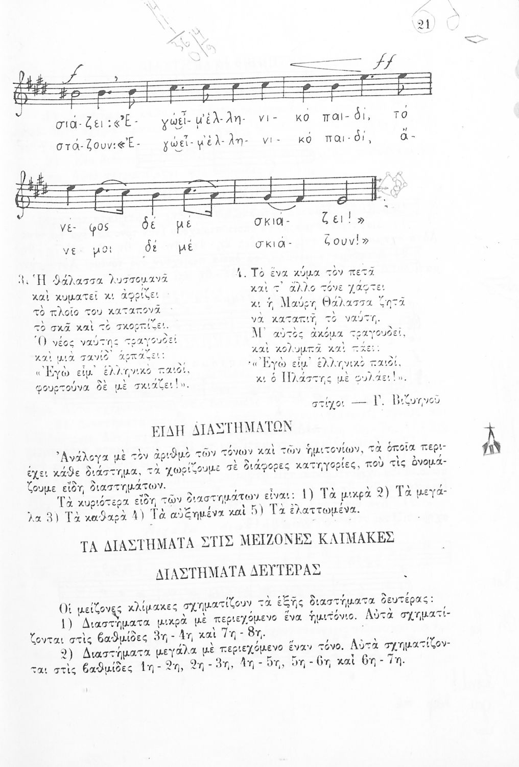 Σχετιζόμενοι όροι:  θεωρία, μελωδικές ασκήσεις, άσματα