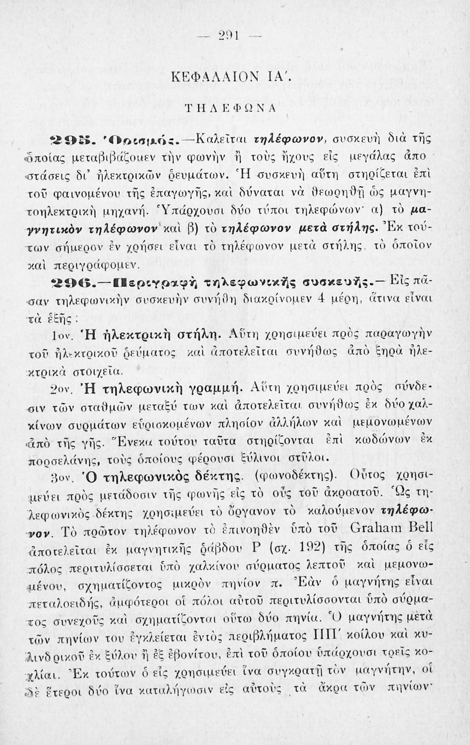 Σχολικό εγχειρίδιο Φυσικής της Δ' Τάξης των Τετρατάξιων Γυμνασίων. Το βιβλίο ξεκινάει με τα ζητήματα ακουστικής, αναλύοντας την παραγωγή και διάδοση της ταχύτητας του ήχου. Στη συνέχεια ασχολείται με το ζήτημα της οπτικής, της διάδοσης και της ταχύτητας του φωτός. Στο τρίτο και τέταρτο κεφάλαιο εξετάζεται ο στατικός και ο δυναμικός ηλεκτρισμός ως φαινόμενα με τις ιδιότητες του εναλλασσόμενου ρεύματος και πρακτικές εφαρμογές του όπως το μικρόφωνο και το ασύρματο τηλέφωνο.