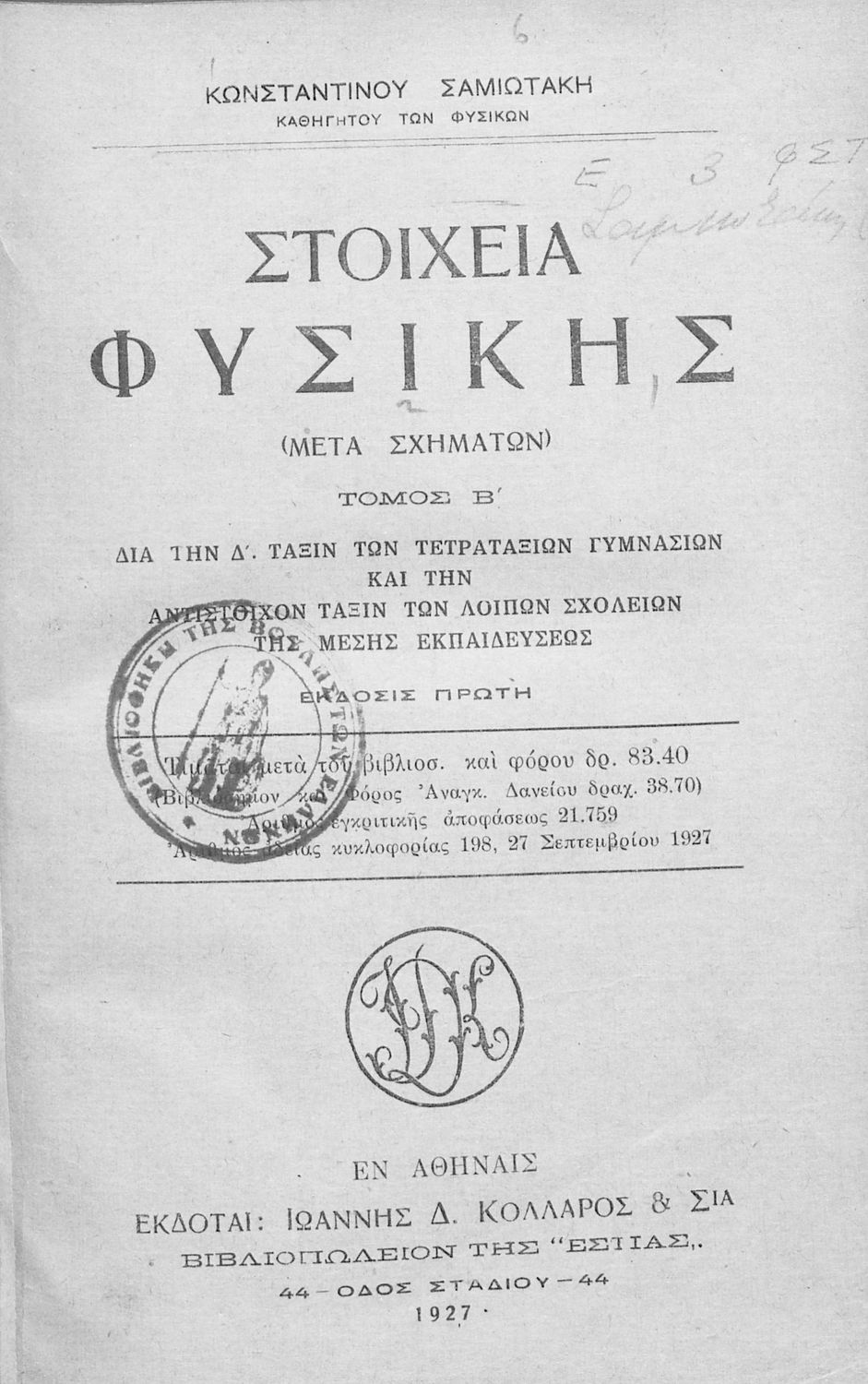 Τίτλος: Στοιχεία Φυσικής (Μετά σχημάτων)