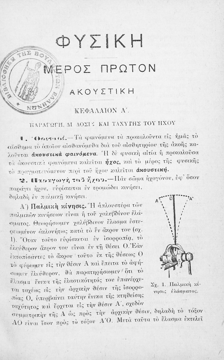 Σχολικό εγχειρίδιο Φυσικής της Δ' Τάξης των Τετρατάξιων Γυμνασίων. Το βιβλίο ξεκινάει με τα ζητήματα ακουστικής, αναλύοντας την παραγωγή και διάδοση της ταχύτητας του ήχου. Στη συνέχεια ασχολείται με το ζήτημα της οπτικής, της διάδοσης και της ταχύτητας του φωτός. Στο τρίτο και τέταρτο κεφάλαιο εξετάζεται ο στατικός και ο δυναμικός ηλεκτρισμός ως φαινόμενα με τις ιδιότητες του εναλλασσόμενου ρεύματος και πρακτικές εφαρμογές του όπως το μικρόφωνο και το ασύρματο τηλέφωνο.