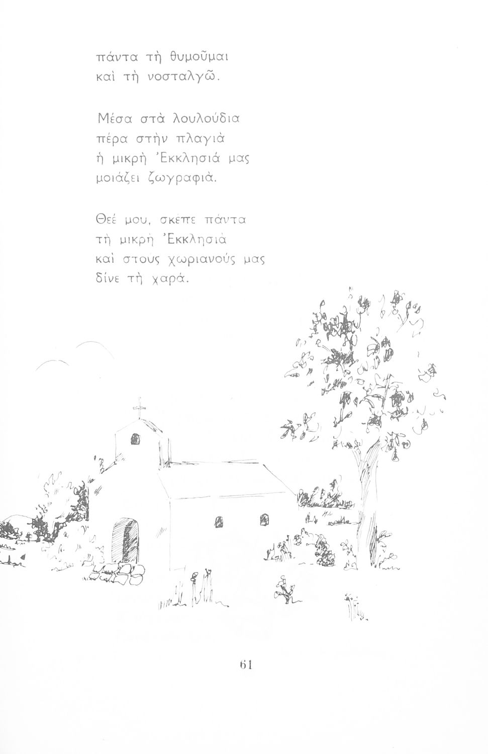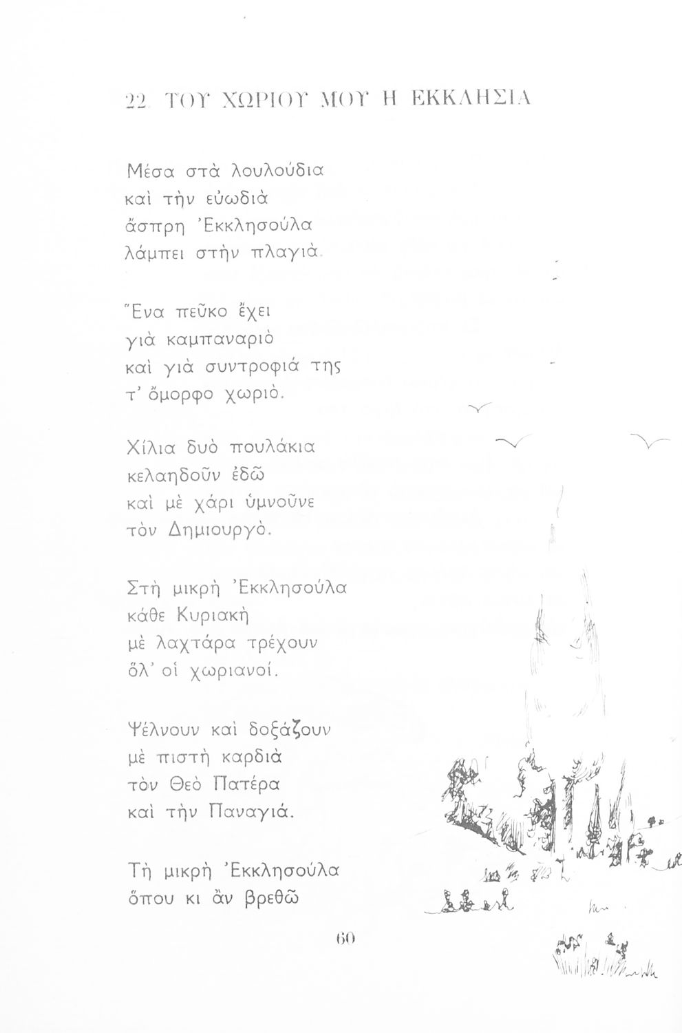 Παιδαγωγικό βοήθημα που περιλαμβάνει ποιήματα και πεζά τα οποία αντλούν τη θεματολογία τους από την ύπαιθρο, την οικογενειακή και κοινωνική ζωή και την έννοια της πατρίδας και της εθνικής ταυτότητας.