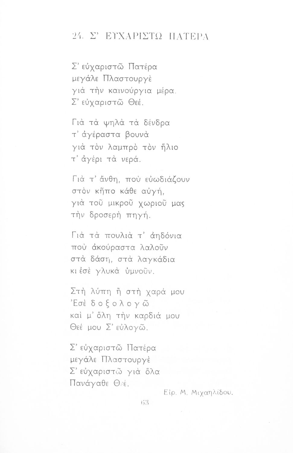 Σχετιζόμενοι όροι:  άσματα, ποιήματα, προσευχή, εμβατήριο