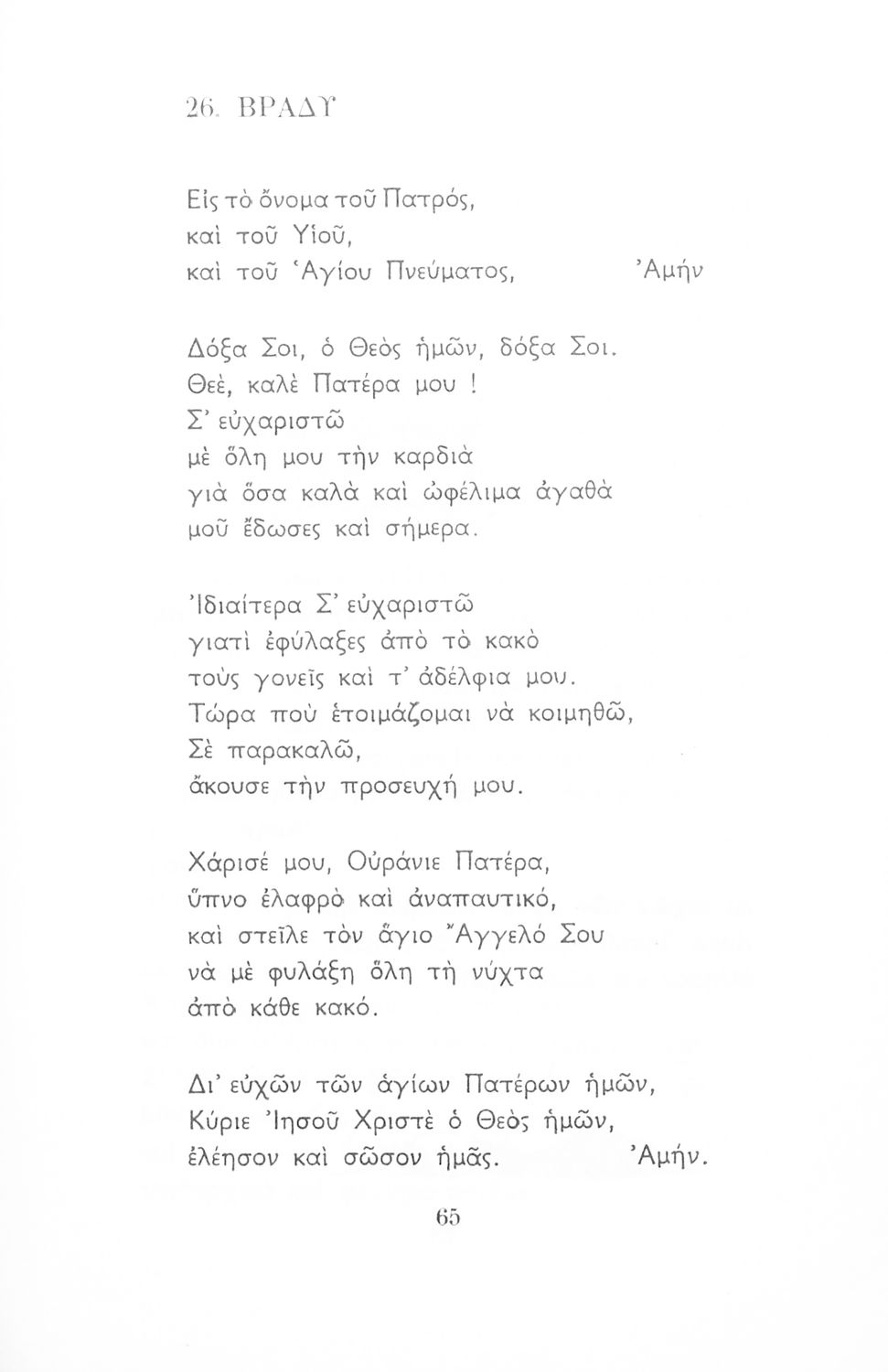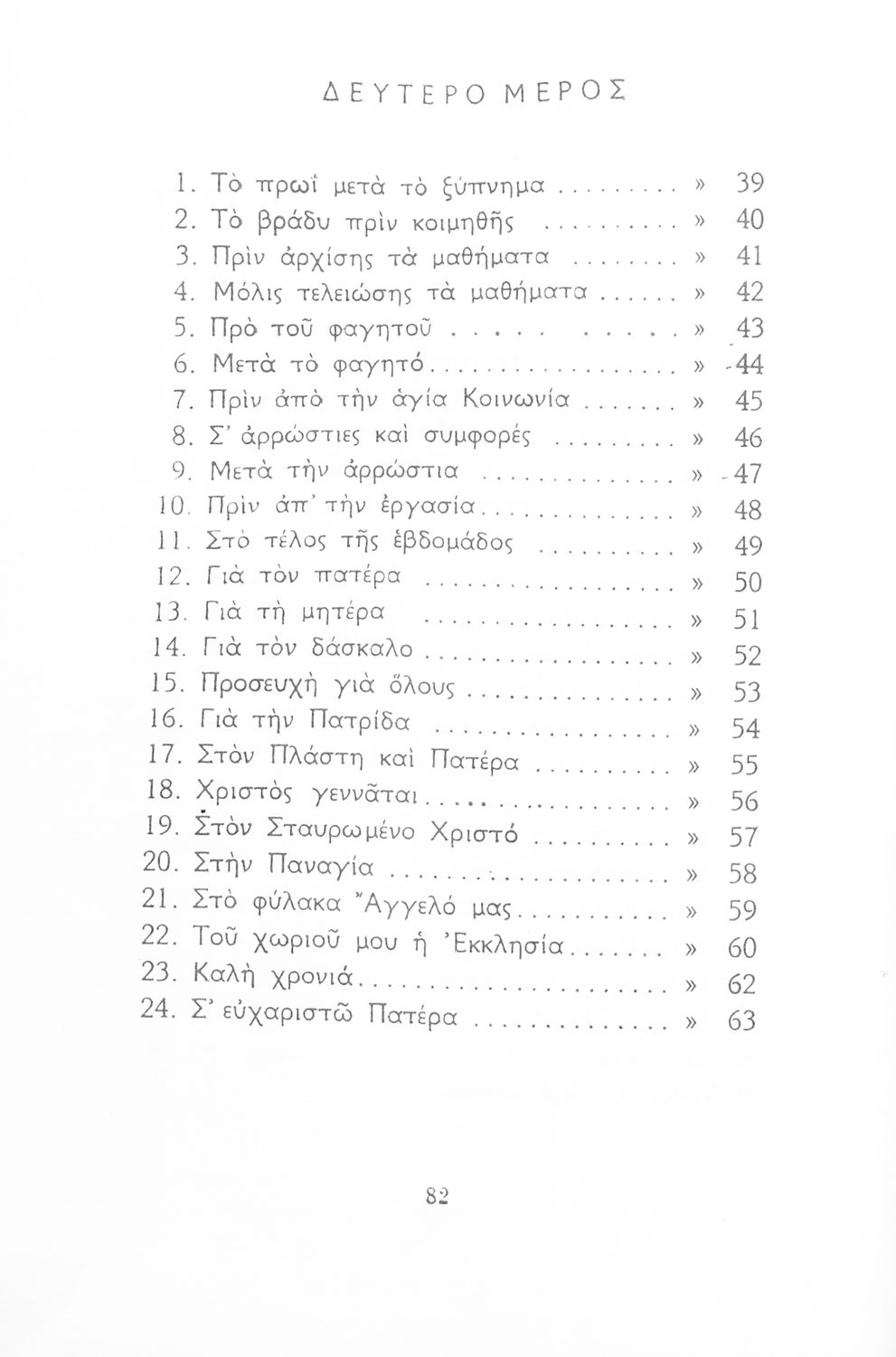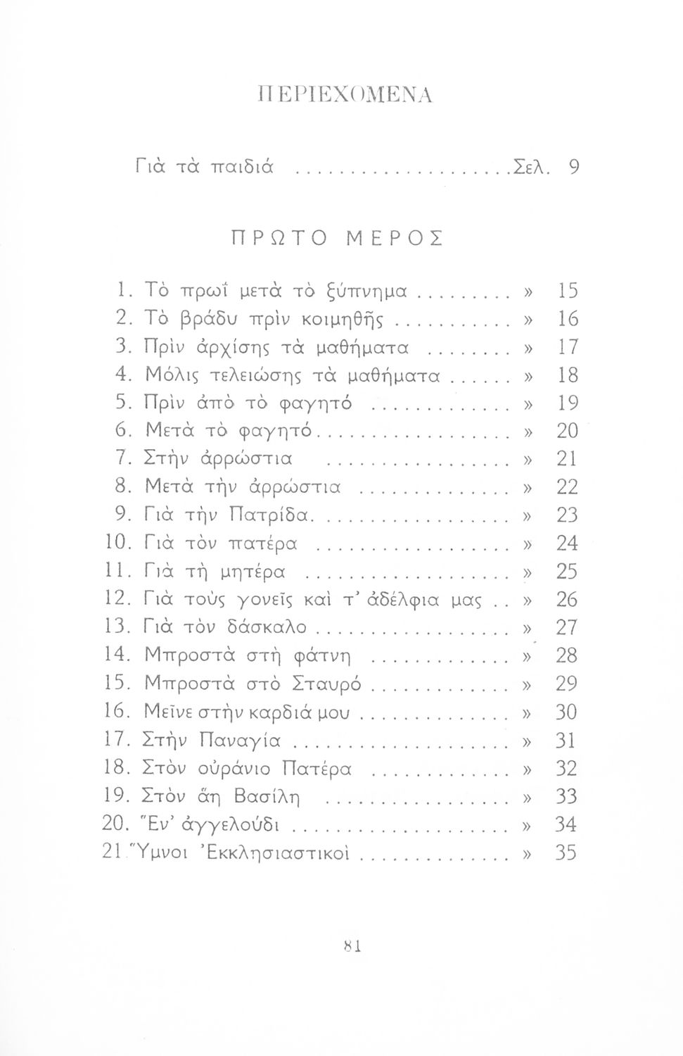 Σχολικό εγχειρίδιο για όλες τις τάξεις του Δημοτικού για το μάθημα των Θρησκευτικών. Το εγχειρίδιο περιλαμβάνει ποιήματα και προσευχές με θέμα τον Χριστό, την Παναγία, τις θρησκευτικές εορτές και στο τέλος του