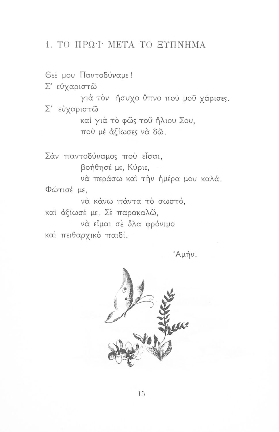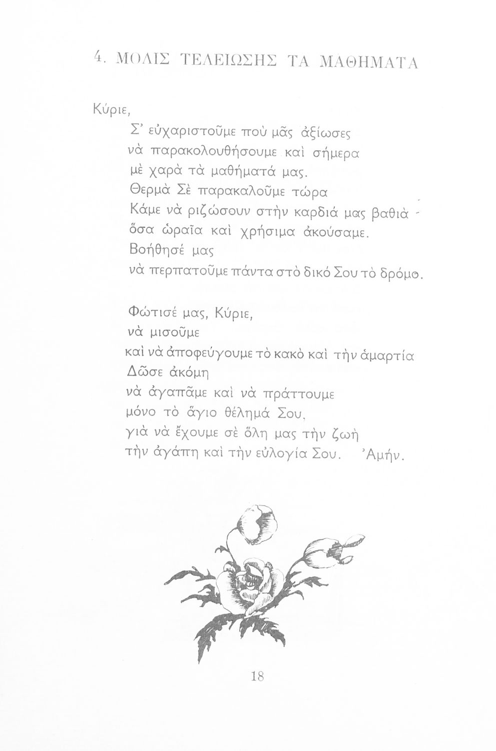 Μαθητικό βοήθημα Θρησκευτικών που περιλαμβάνει προσευχές και παρτιτούρες.