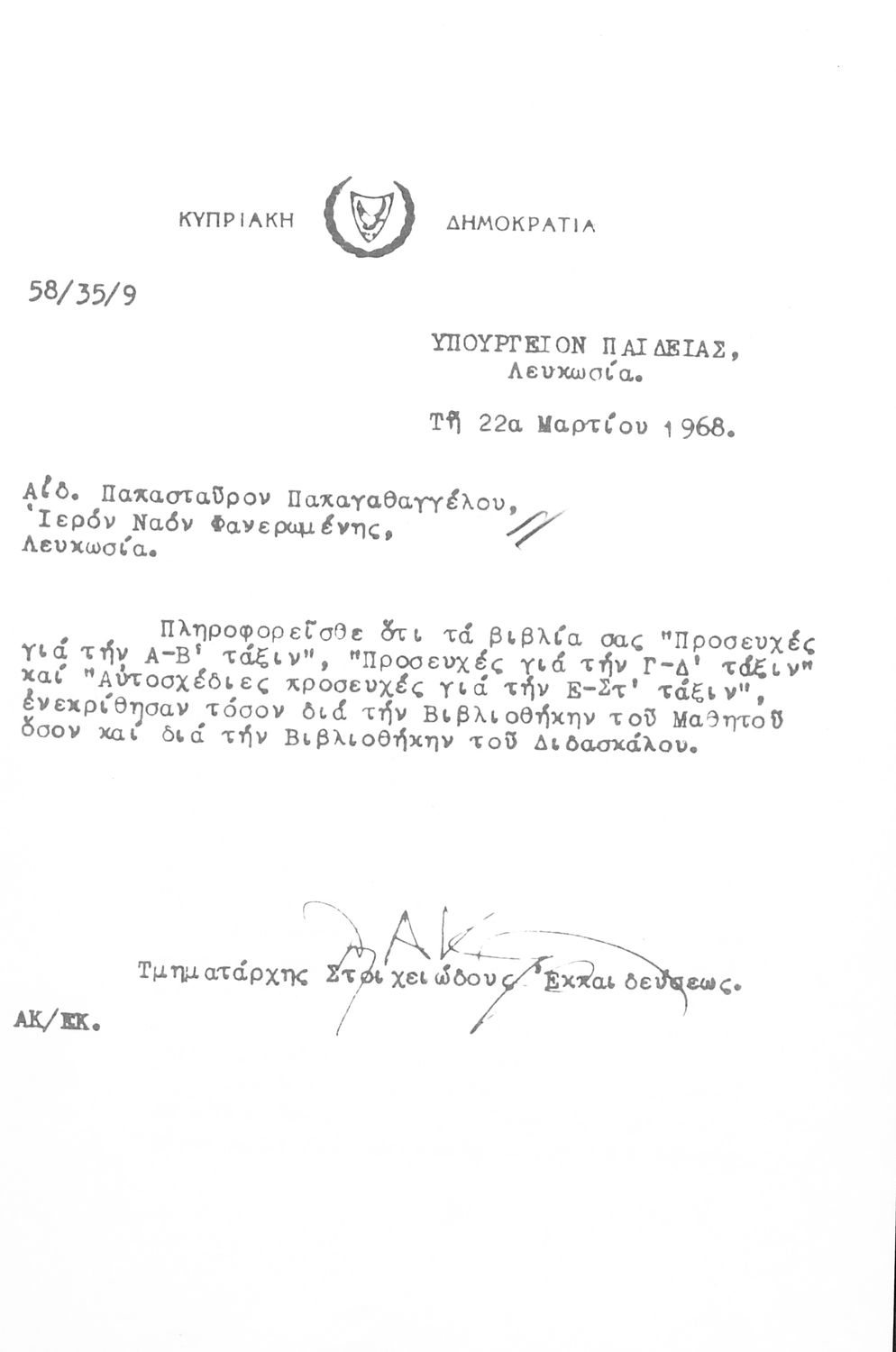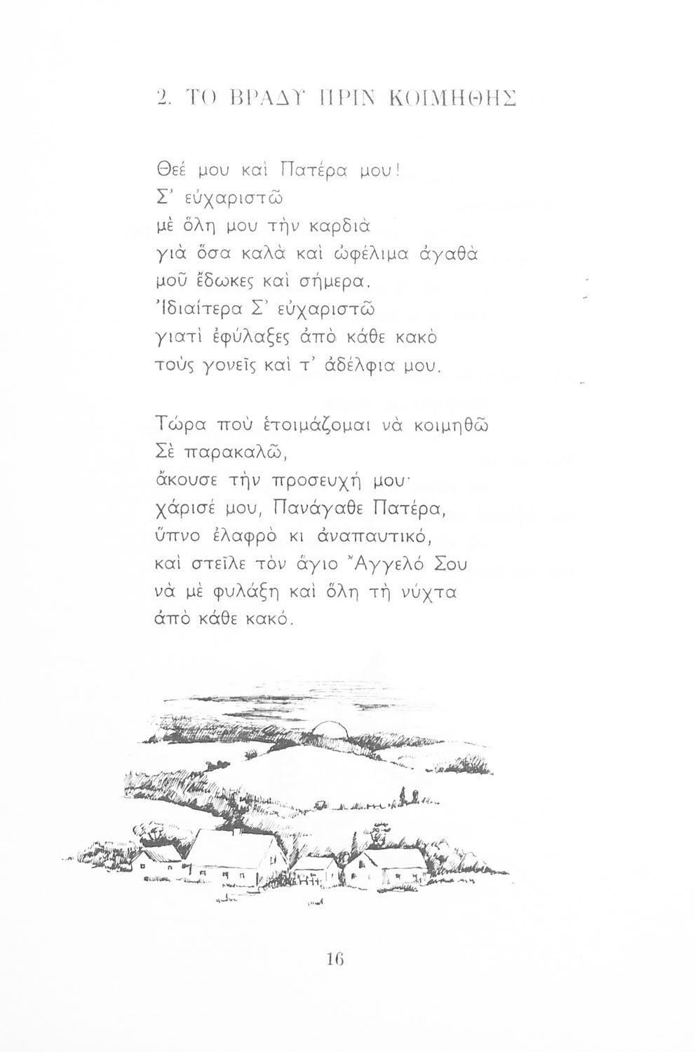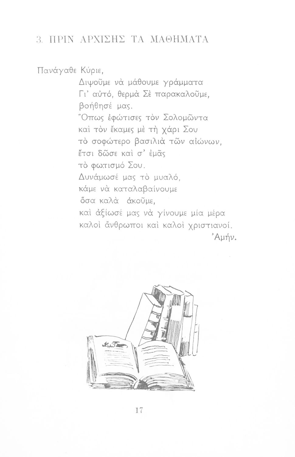 Βαθμίδα εκπαίδευσης: Πρωτοβάθμια Τάξη: Γ' Δημοτικού / Δ' Δημοτικού Μάθημα: Θρησκευτικά Γλώσσα: Δημοτική Παρουσίαση περιεχομένου: Μαθητικό βοήθημα Θρησκευτικών που περιλαμβάνει προσευχές και παρτιτούρες. |