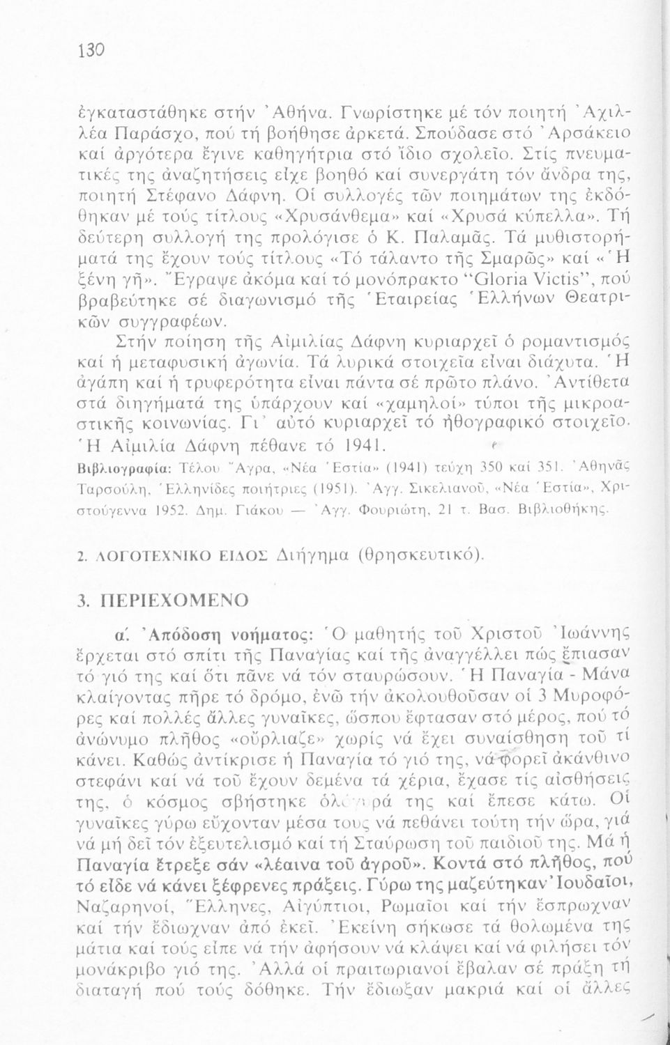 Σχολικό εγχειρίδιο Νέων Ελληνικών Δ΄ Γυμνασίου και Β΄ Αστικού Σχολείου που περιέχει πεζά και ποιήματα Ελλήνων συγγραφέων εμπνευσμένα από τη θρησκευτική και κοινωνική ζωή, την ελληνική μυθολογία, την αρχαία και