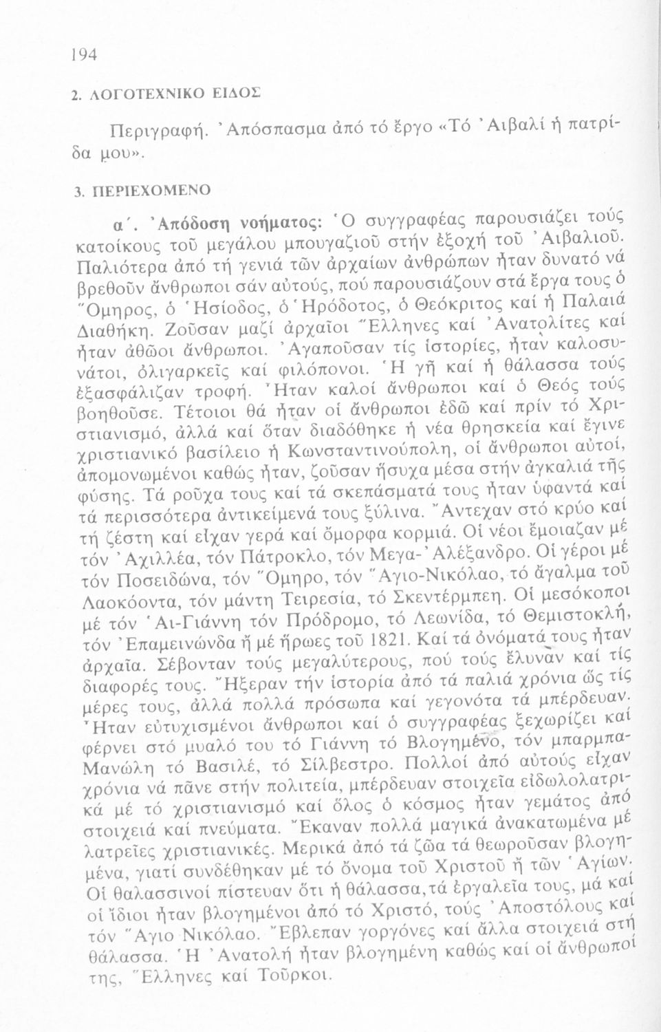 Σχολικό εγχειρίδιο Νέων Ελληνικών Δ΄ Γυμνασίου και Β΄ Αστικού Σχολείου που περιέχει πεζά και ποιήματα Ελλήνων συγγραφέων εμπνευσμένα από τη θρησκευτική και κοινωνική ζωή, την ελληνική μυθολογία, την αρχαία και