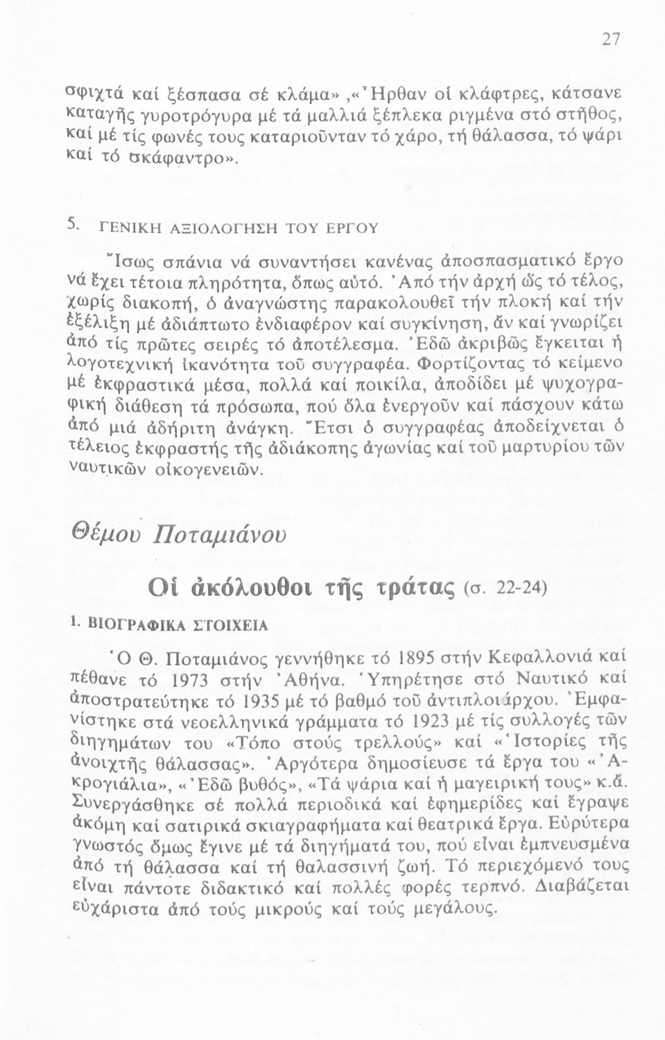 Μαθητικό βοήθημα Νέων Ελληνικών για την Ε΄ και ΣΤ΄ Γυμνασίου που περιλαμβάνει αναλύσεις των κειμένων των αντίστοιχων σχολικών εγχειριδίων από νοηματική, ερμηνευτική και γλωσσική σκοπιά. Περιέχει και βιογραφίες