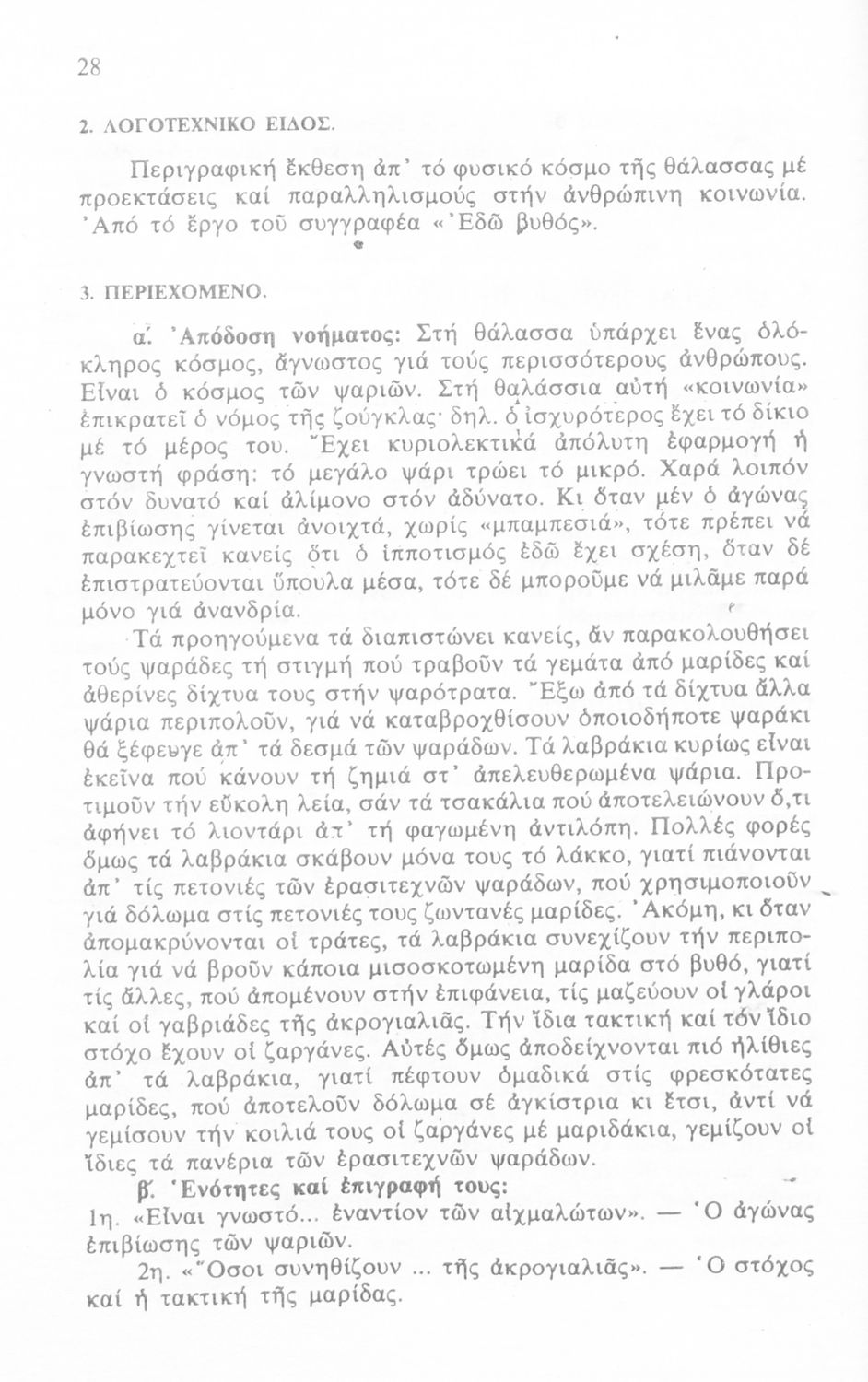 Σχολικό εγχειρίδιο Νέων Ελληνικών Δ΄ Γυμνασίου και Β΄ Αστικού Σχολείου που περιέχει πεζά και ποιήματα Ελλήνων συγγραφέων εμπνευσμένα από τη θρησκευτική και κοινωνική ζωή, την ελληνική μυθολογία, την αρχαία και