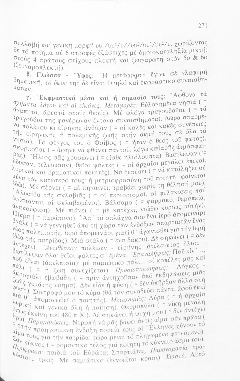 Μαθητικό βοήθημα Νέων Ελληνικών για την Ε΄ και ΣΤ΄ Γυμνασίου που περιλαμβάνει αναλύσεις των κειμένων των αντίστοιχων σχολικών εγχειριδίων από νοηματική, ερμηνευτική και γλωσσική σκοπιά. Περιέχει και βιογραφίες