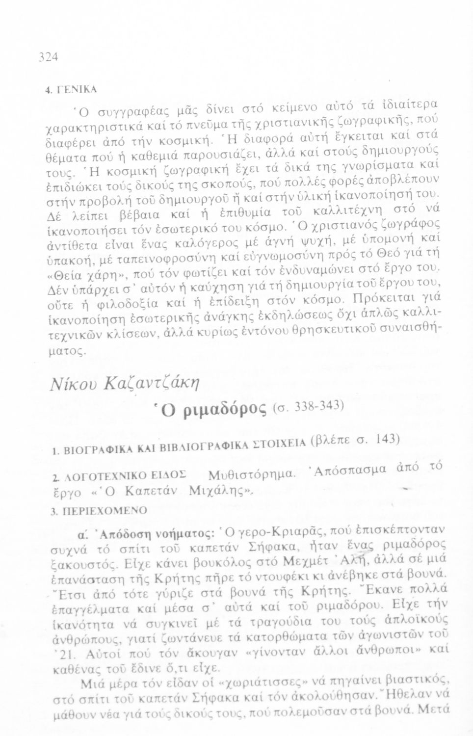 Σχολικό εγχειρίδιο Νέων Ελληνικών Δ΄ Γυμνασίου και Β΄ Αστικού Σχολείου που περιέχει πεζά και ποιήματα Ελλήνων συγγραφέων εμπνευσμένα από τη θρησκευτική και κοινωνική ζωή, την ελληνική μυθολογία, την αρχαία και