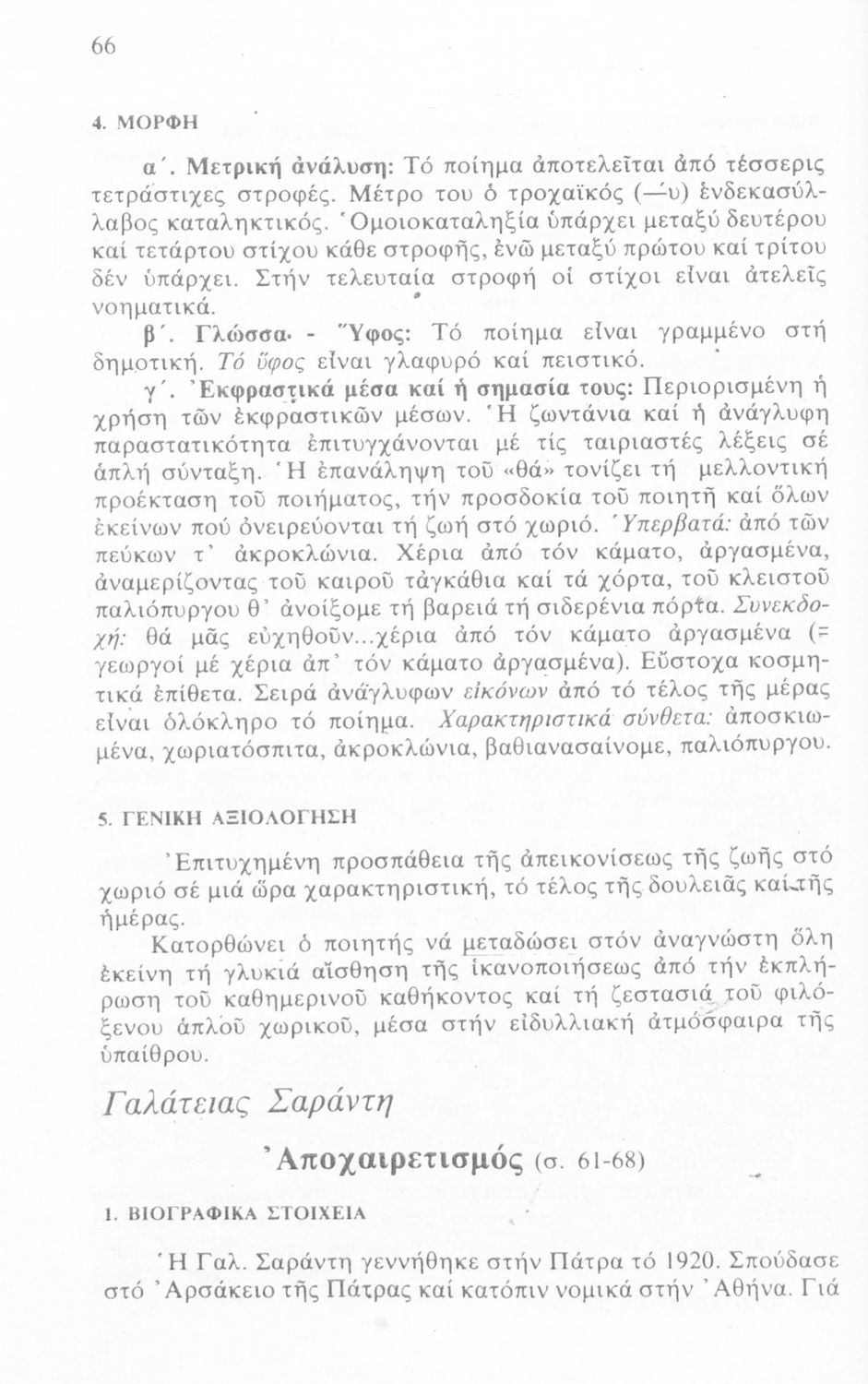 Μαθητικό βοήθημα Νέων Ελληνικών για την Ε΄ και ΣΤ΄ Γυμνασίου που περιλαμβάνει αναλύσεις των κειμένων των αντίστοιχων σχολικών εγχειριδίων από νοηματική, ερμηνευτική και γλωσσική σκοπιά. Περιέχει και βιογραφίες